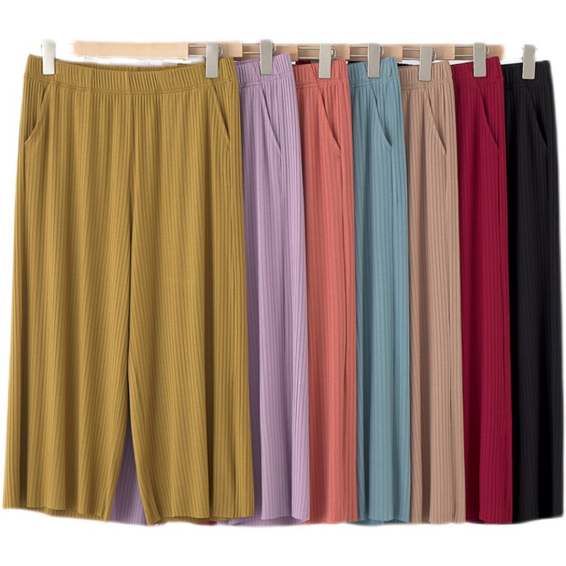 New summer home pants women's large size home pants cropped hakama drape loose plus fat increase women's thin section