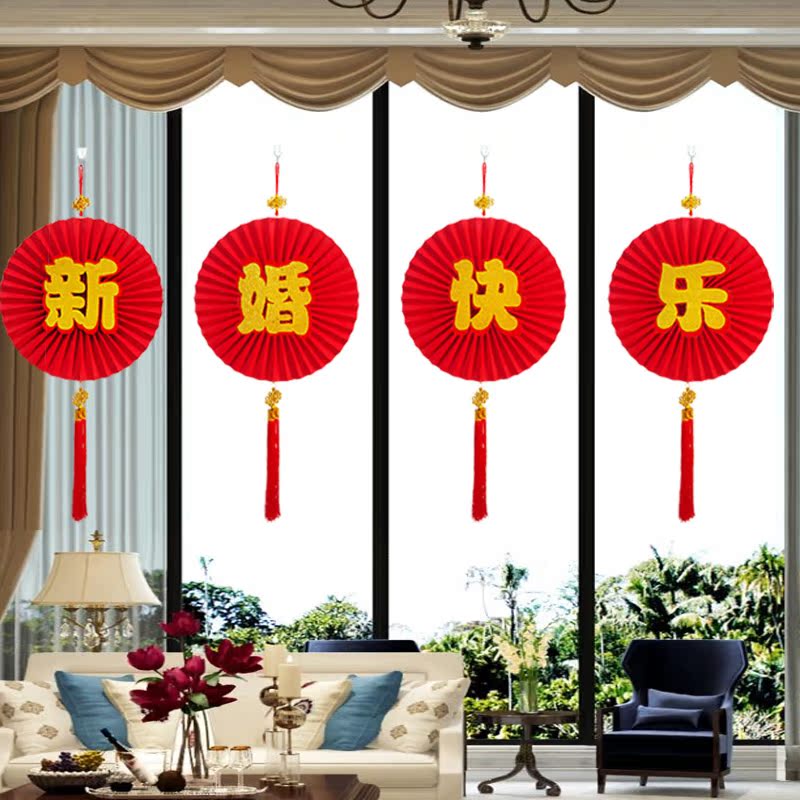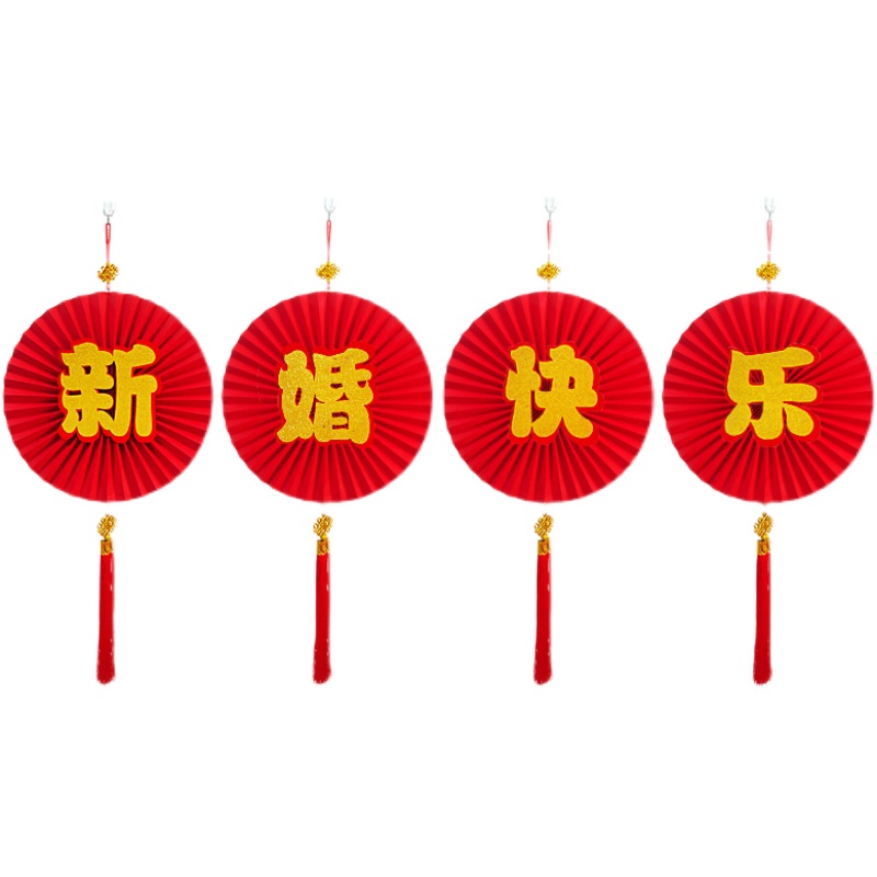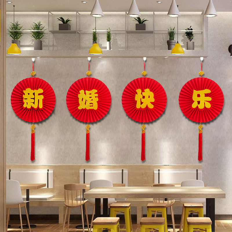 Wedding Paper Fan Pendant Happy Character Woman Square Bedroom Supplies Large Fully Decorated Chinese Man's New Room Living-room Hanging Decoration Arrangement