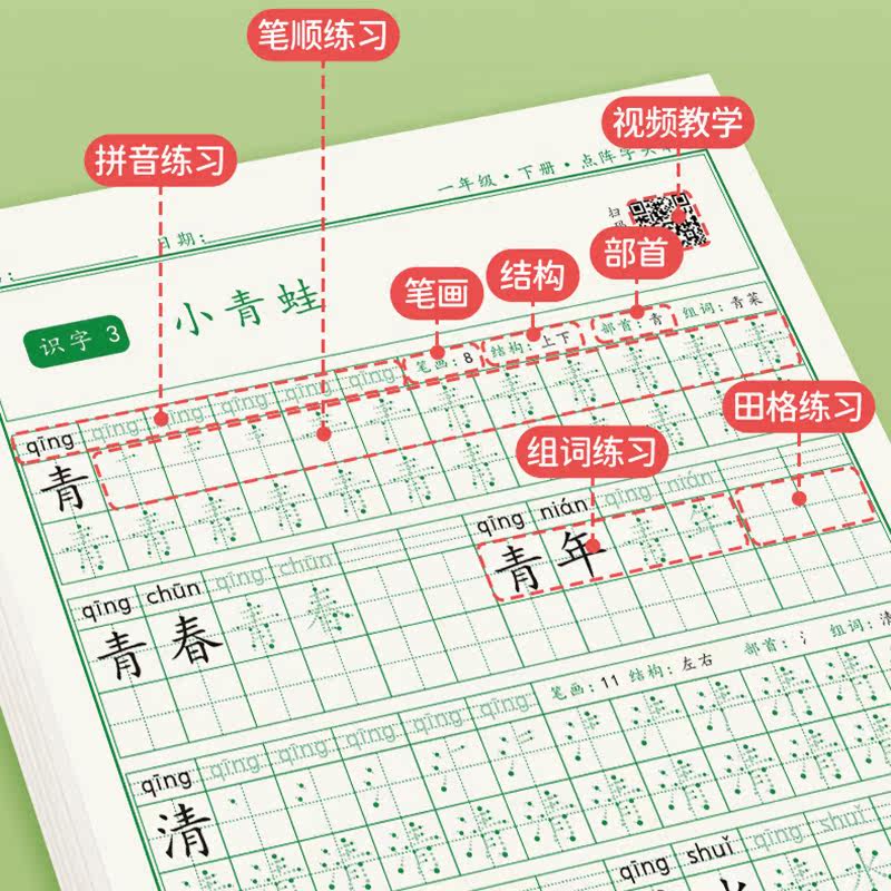 First grade sophomore grade language synchrotron laser stroke pen Shunnero calligraphy Calligraphy Elementary School Students Control Pens training Hard pens Calligraphy Exercises in italicized book children sketching bento writing and writing Daily rehearscopies of the third year students sketch red books