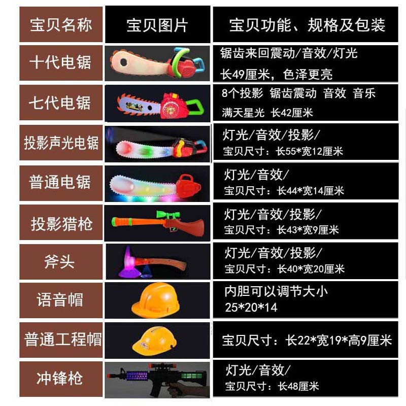 Slighthead gun-saw toy cutting cutter wood equipped with hat pistols electric children sound and light gun bear out