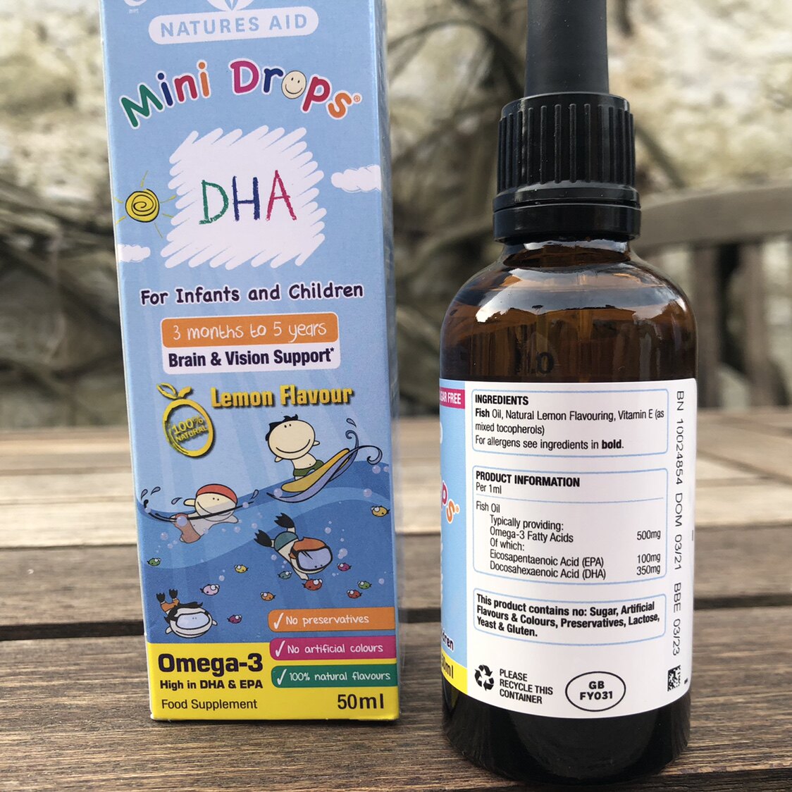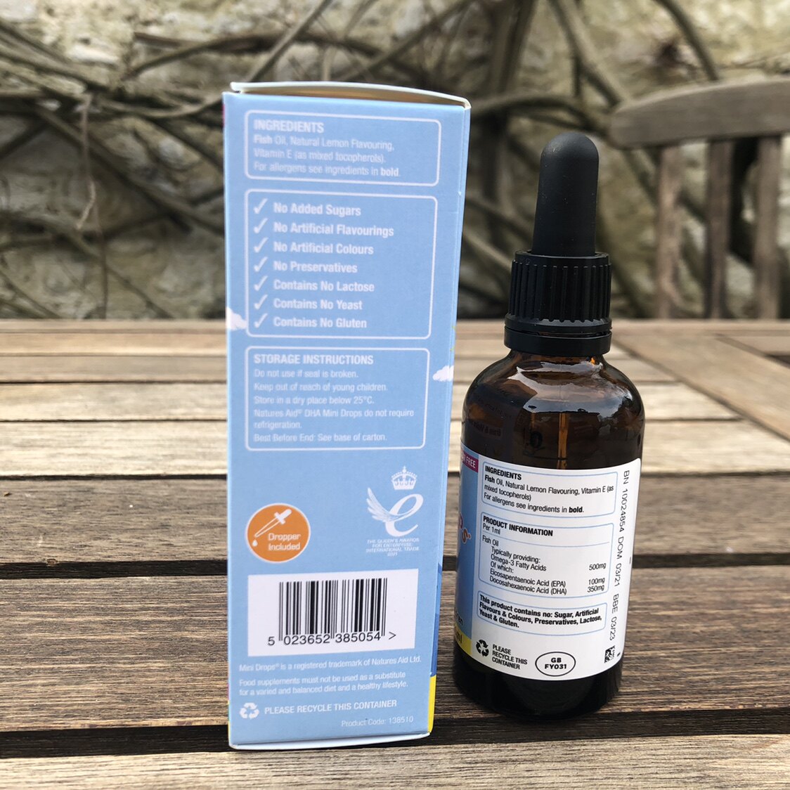 British natures aid DHA drops three months to five years old to promote brain development and eye protection 50ml