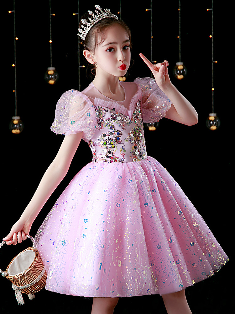 High-end 61 Children Show Dress Pungbo Gauze Dress Yellow Girls Dress Princess Skirt