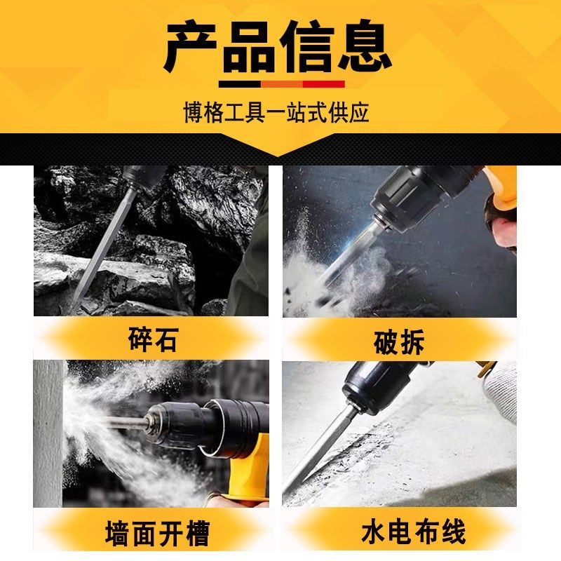 Electric Hammer Drill Widening Flat Chisel Square Handle Four Pit Widening Lengthened Flat Chisel Tile Wall Grey 120mm Shovel Brass Wire Flat Shovel