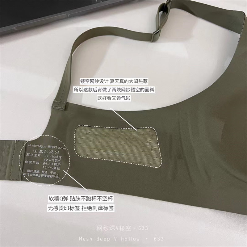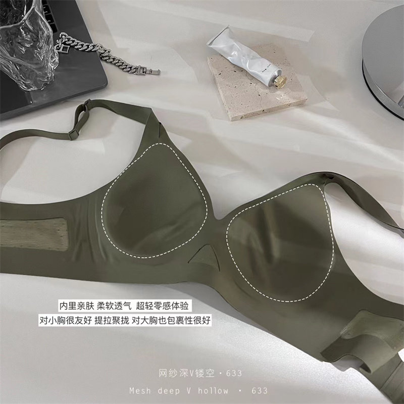 Advanced skin breathable veil Sexy Deep V fixed cup soft support comfortable indentation underwear steel - free bra