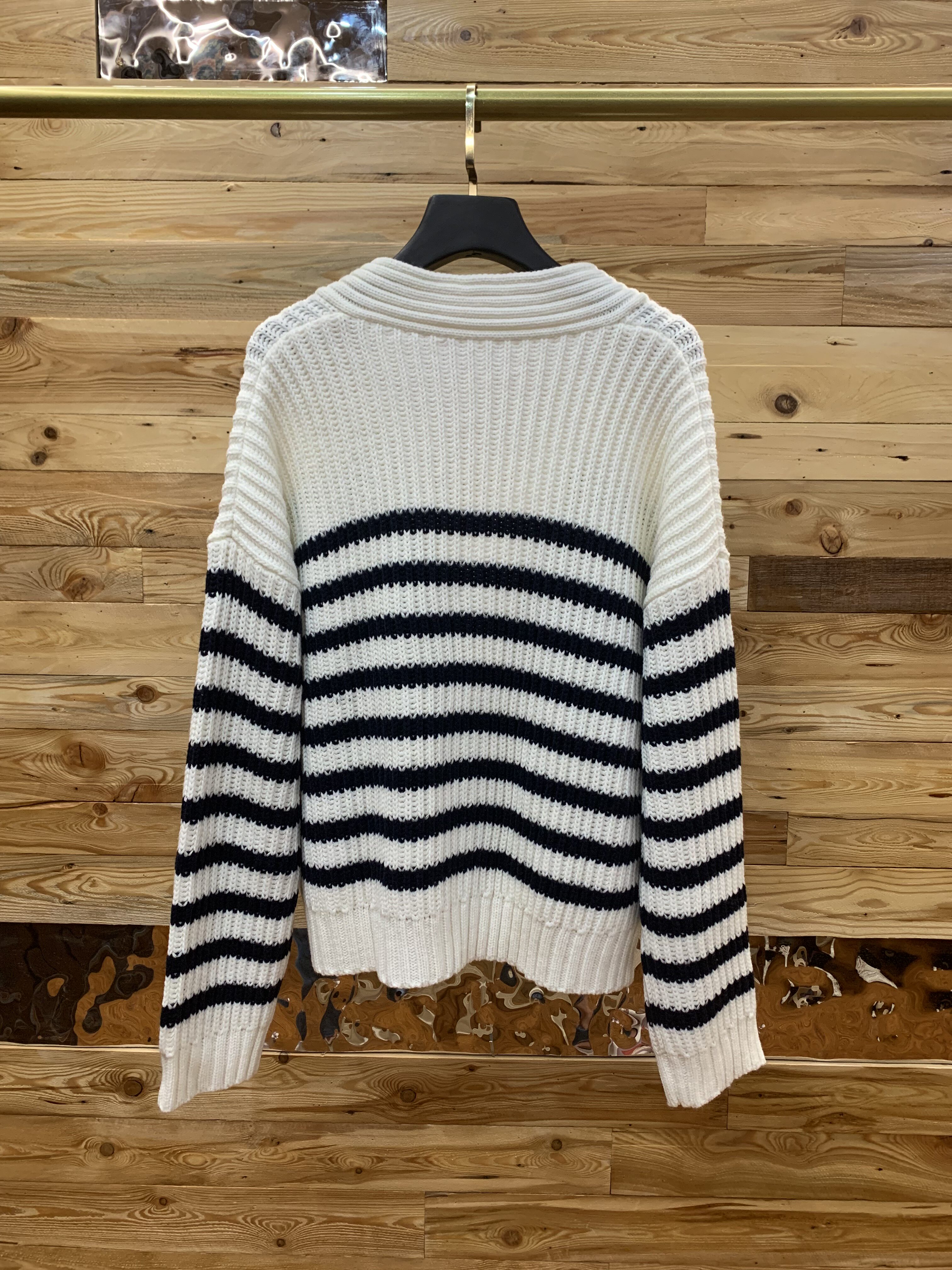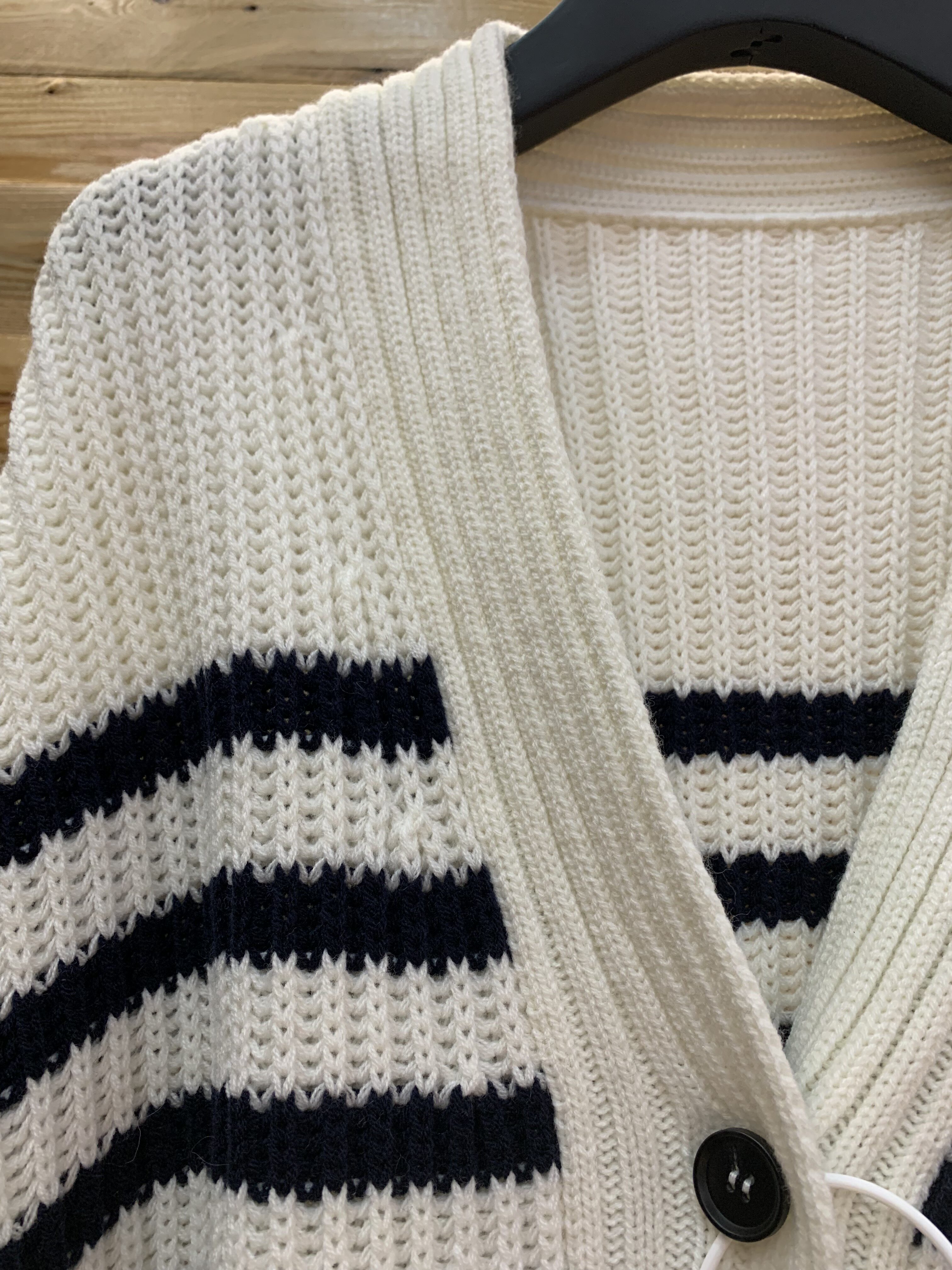 2022 spring new V-neck striped knitted cardigan dropped shoulders lazy wind sweater jacket women's single-breasted button-up long-sleeved