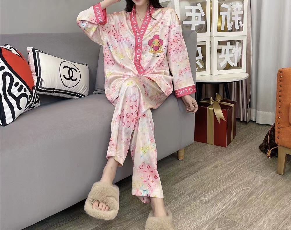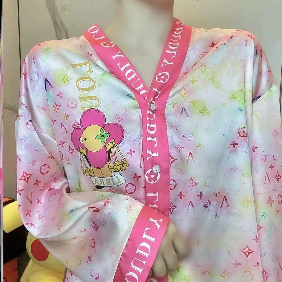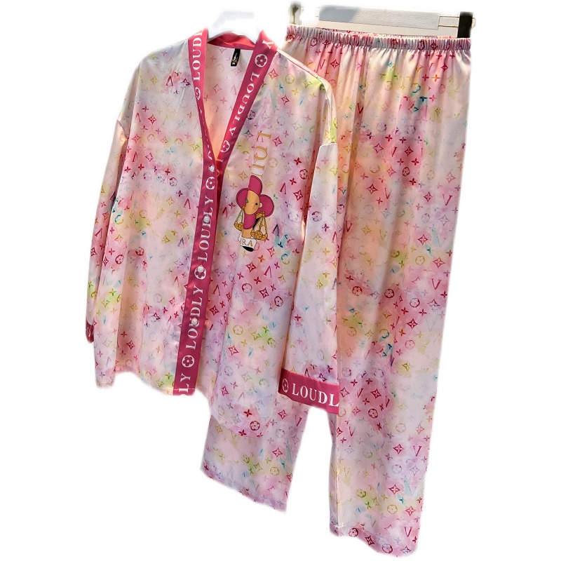 Ice silk pajamas women spring and autumn summer thin long-sleeved suit 2022 new net red explosive home clothes two-piece set