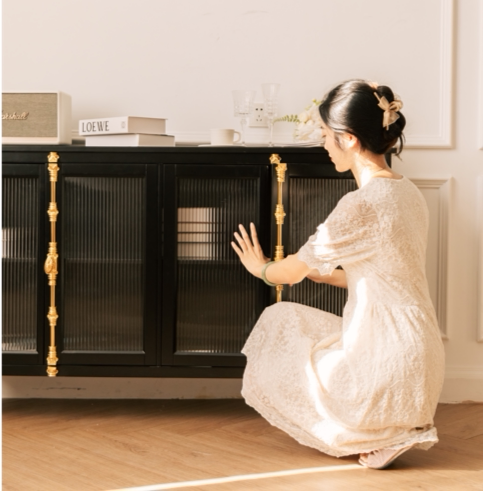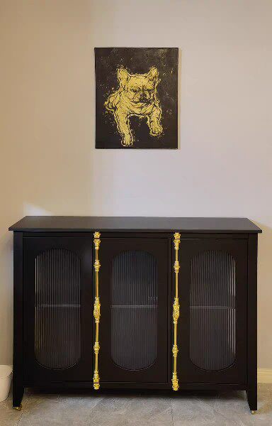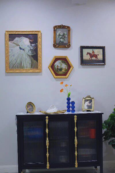 French retro solid wood grandma cabinet hall entrance cabinet black dining cabinet light luxury Changhong glass high cabinet