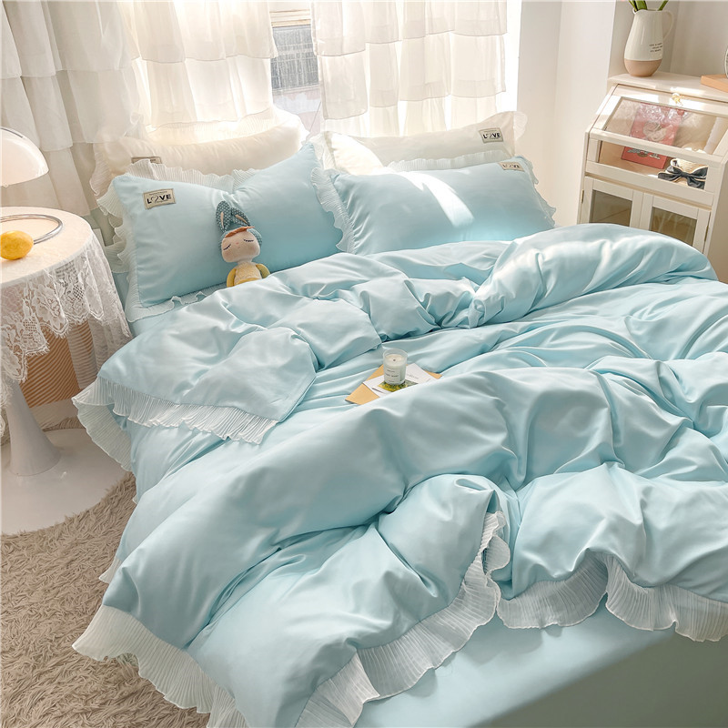The Nordic wind double-sided ice wire four pieces of spring and summer water washing silk simple pure colored bedding sheet is set 4 pieces