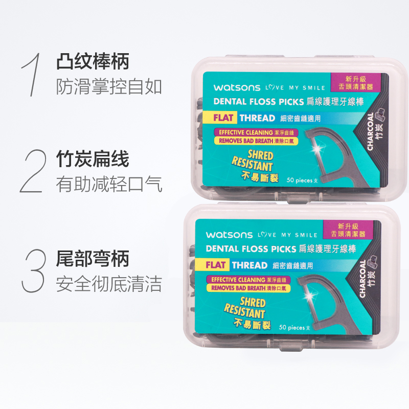 Watsons dental floss family pack ultra-fine box portable bamboo charcoal flat line 100 disposable toothpick line