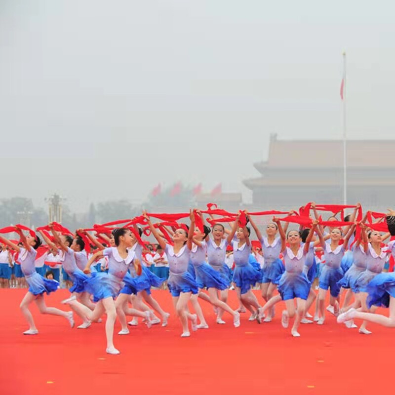 New Year's Day children's costumes Xiaohe style thinking of dreams running children's red scarf chorus clothes girls dance clothes