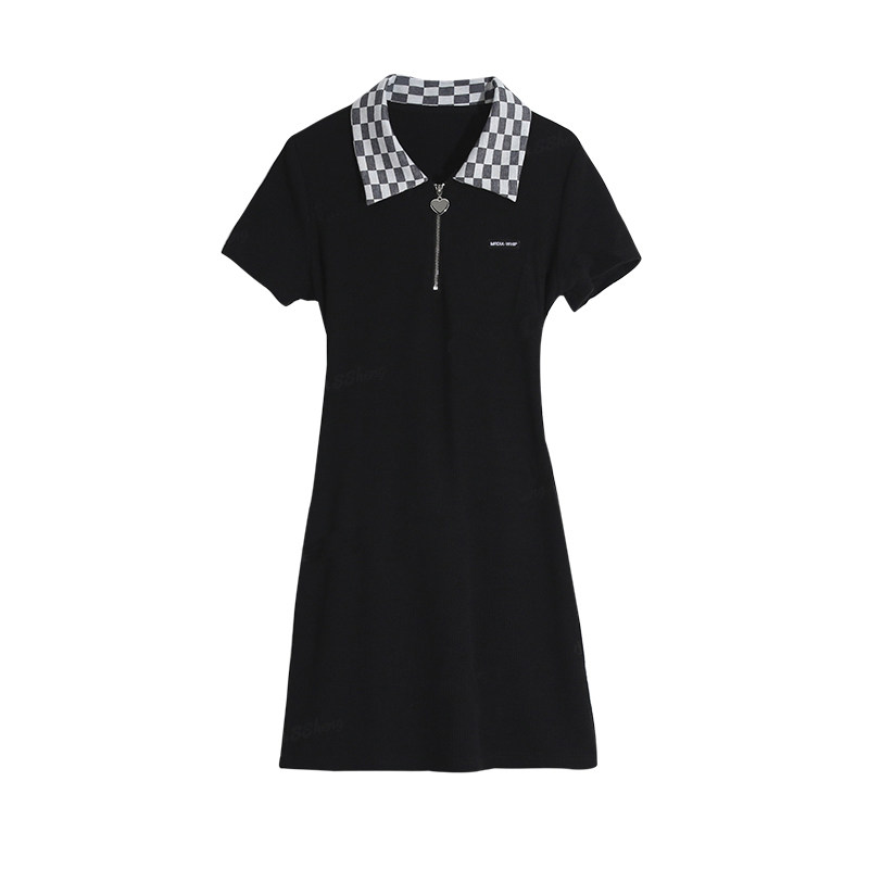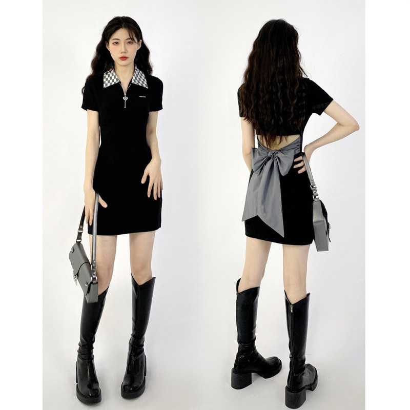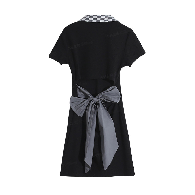 Chessboard GPOLO collar Short sleeves Ocean dress Children Summer 2022 New butterfly knot Slim Wrap Hip short dress