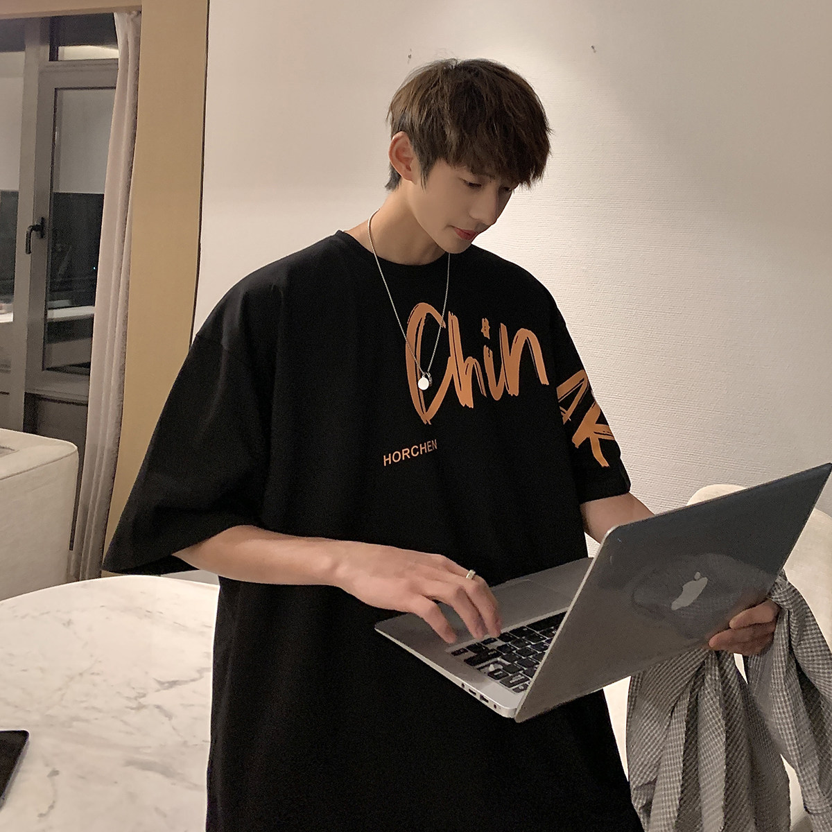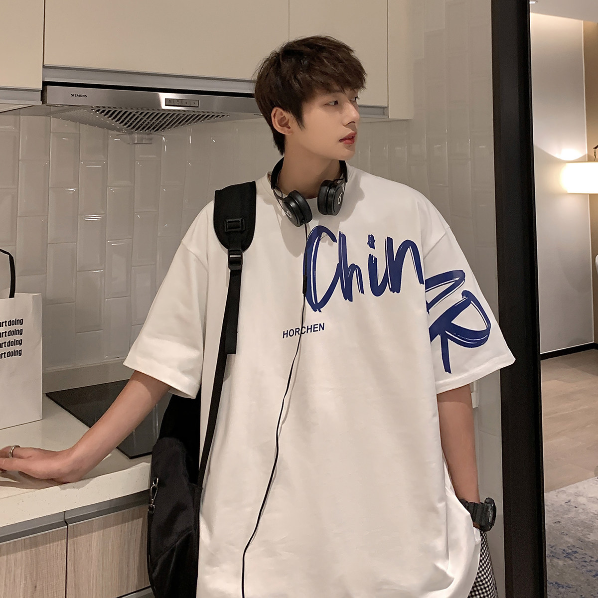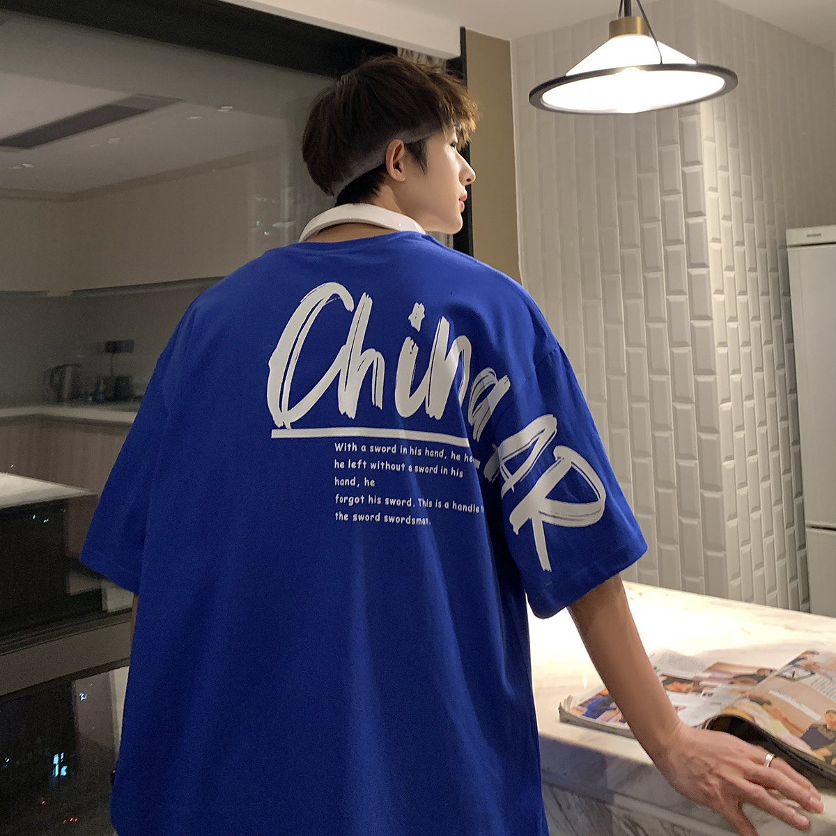 Summer short sleeves T-shirt Male design Feeling Small Crowdprinted Half Sleeves Clothes Large Size Loose Casual Klein Blue T-shirt