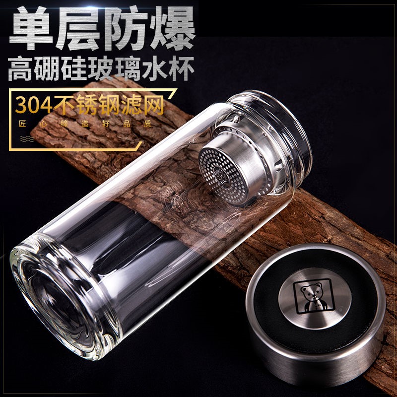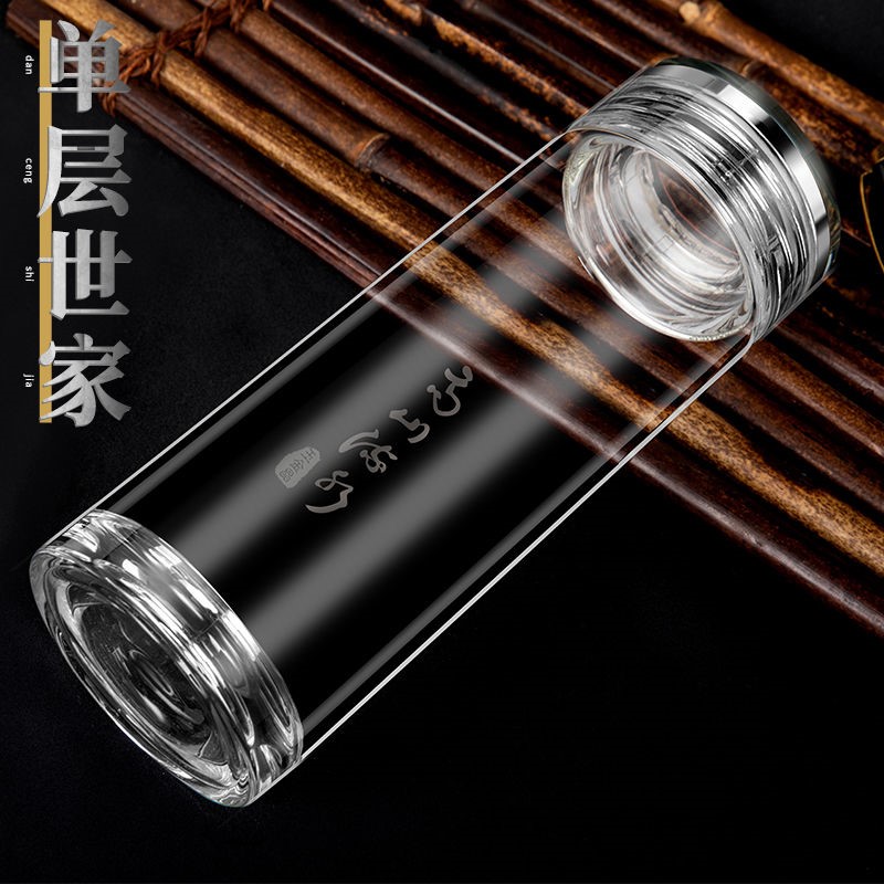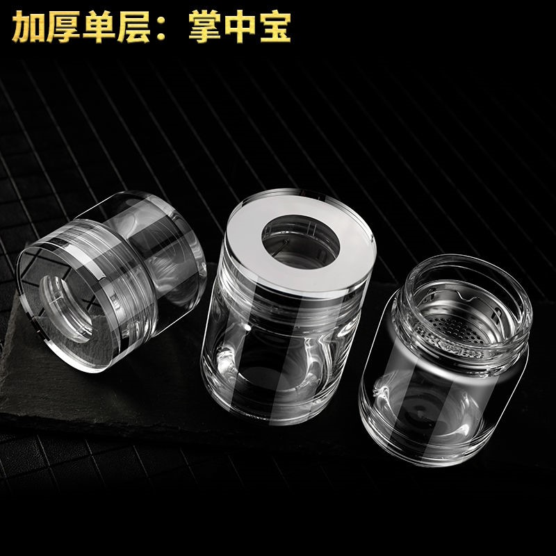 Yujinjing single-layer glass portable small crystal cup men's simple household tea cup transparent with lid drinking cup