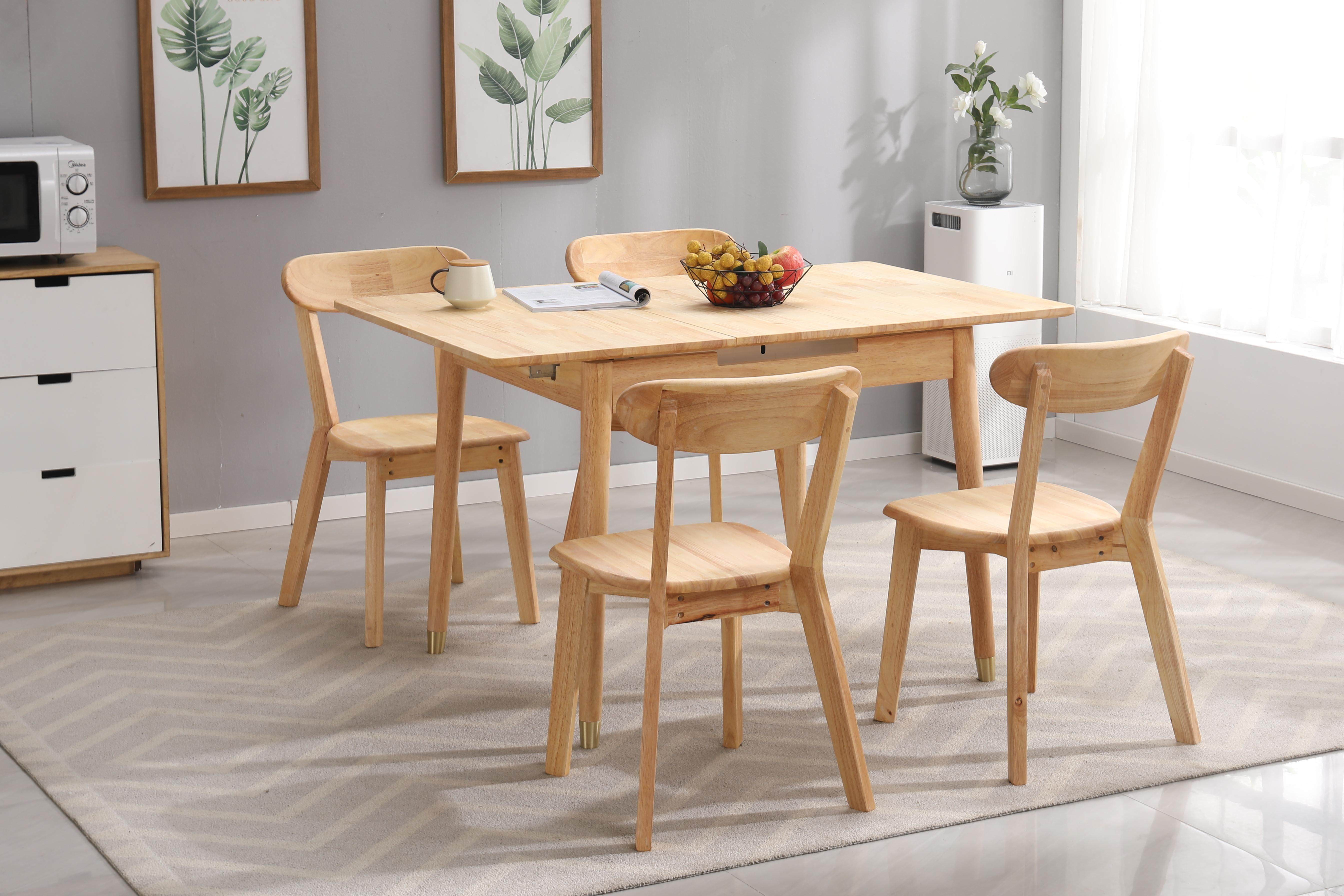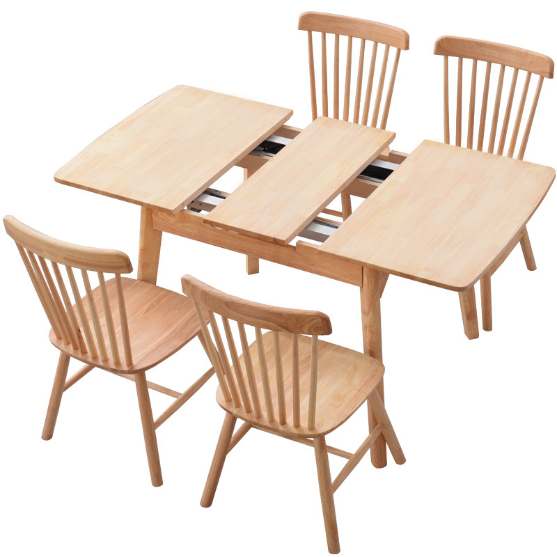 Nordic Solid Wood Folding Telescopic Dining Table And Chairs Package Home Small Household Type Rectangular Wooden Dining Table Push-and-pull Lifting