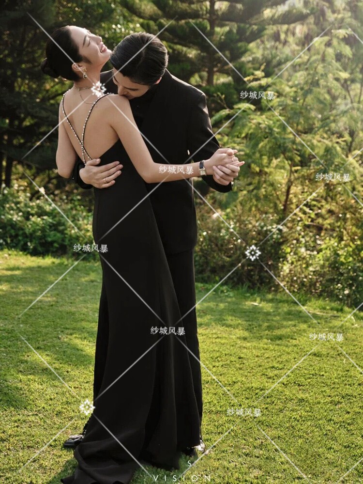 Photo Studio Theme Costumes Couple Location Travel Photography Photo Photography Suspender Dress Black Simple Mermaid Wedding Dress