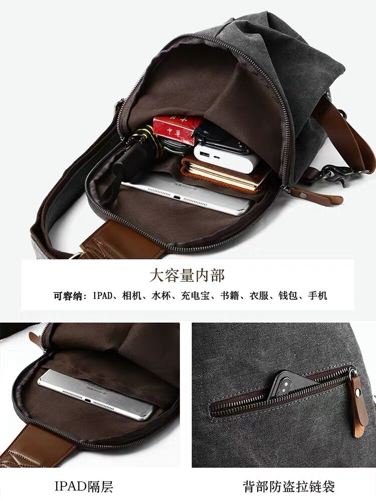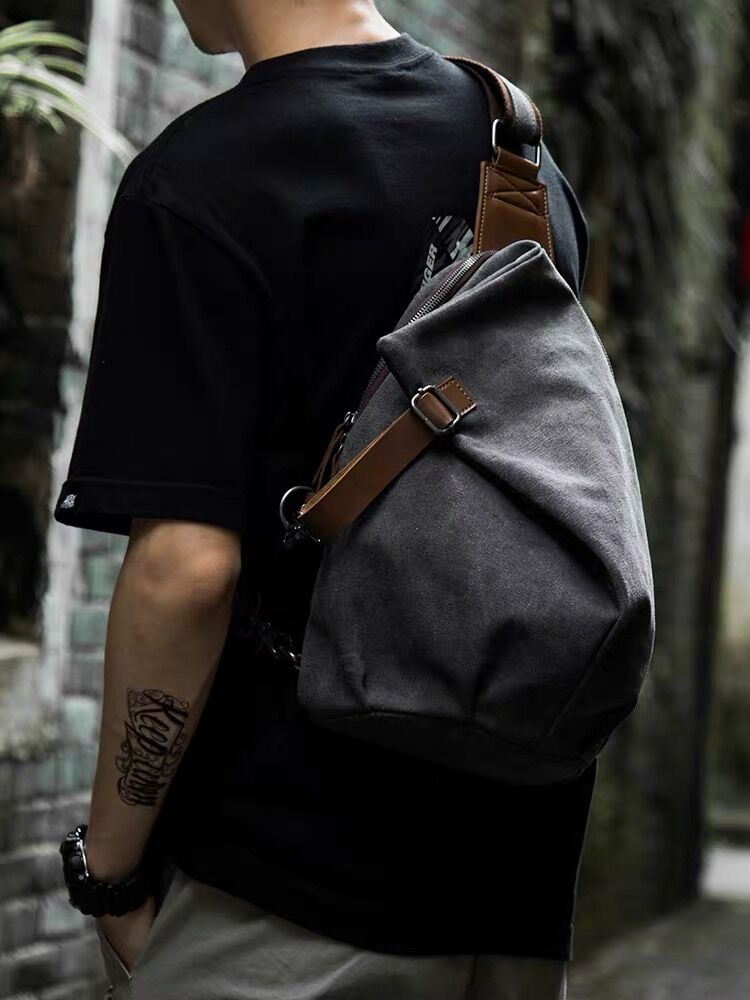Hong Kong Chauded Purse Strings Retro Canvas Single Shoulder Diagonal Satchel Casual Fashion Chest Bag Travel Skewed Men Bag