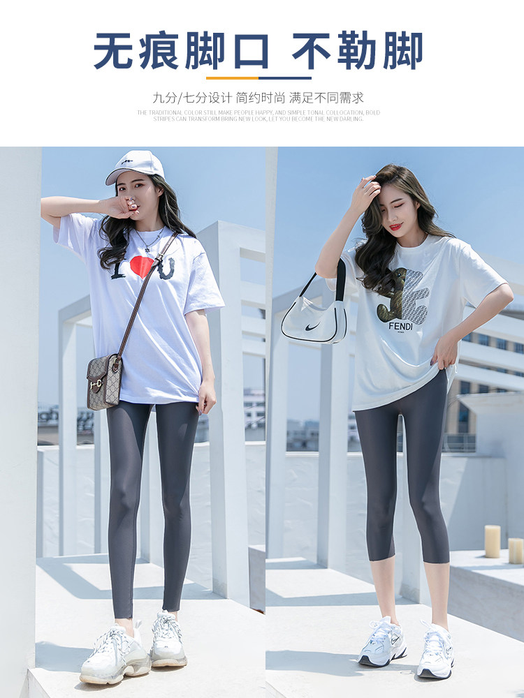Ice screw shark striking pants in summer thin seven pants high waist elastic tight little feet nine-point yoga pants