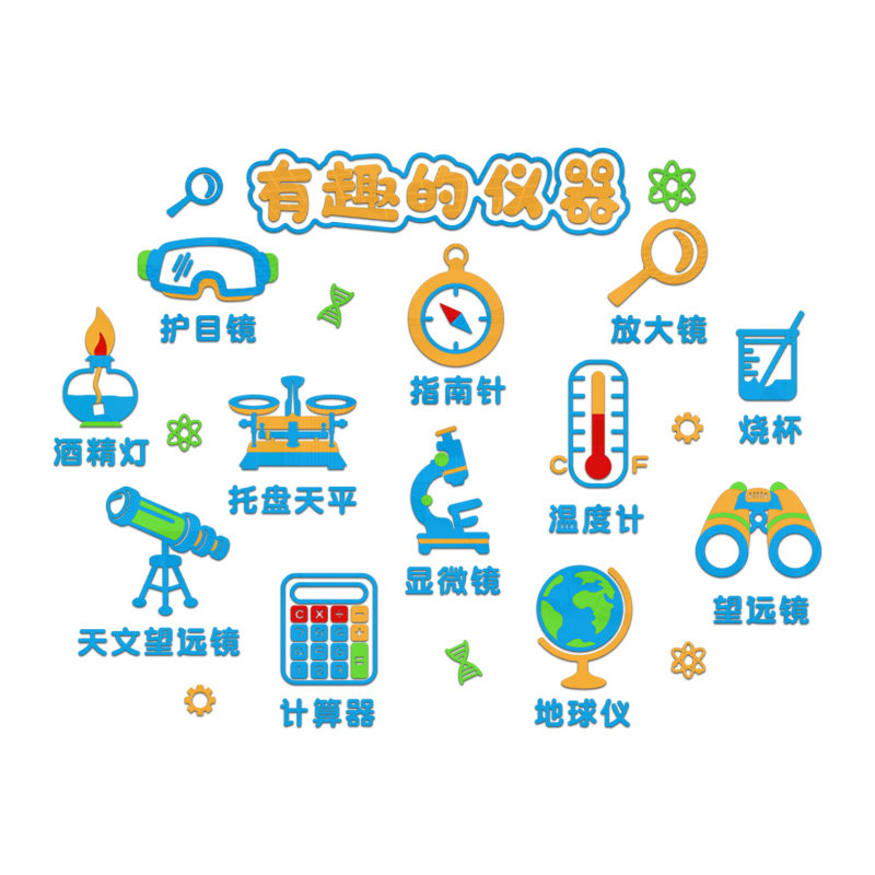 Scientific Instruments Cognitive Themed cultural wall Collage Experimental Classroom Wall Deco of Kindergarten Ring Creation Class Placement