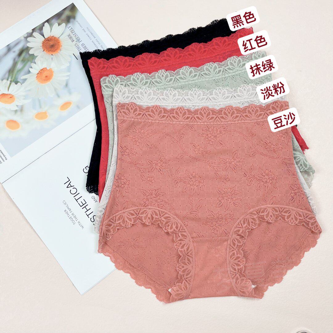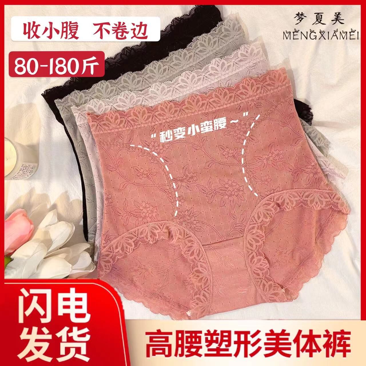 Mengxiamei lace panties women's high waist abdomen cotton antibacterial thin section buttocks seamless lace sexy belly pants