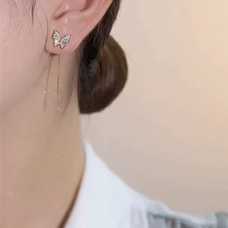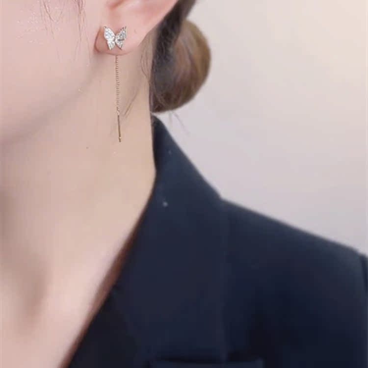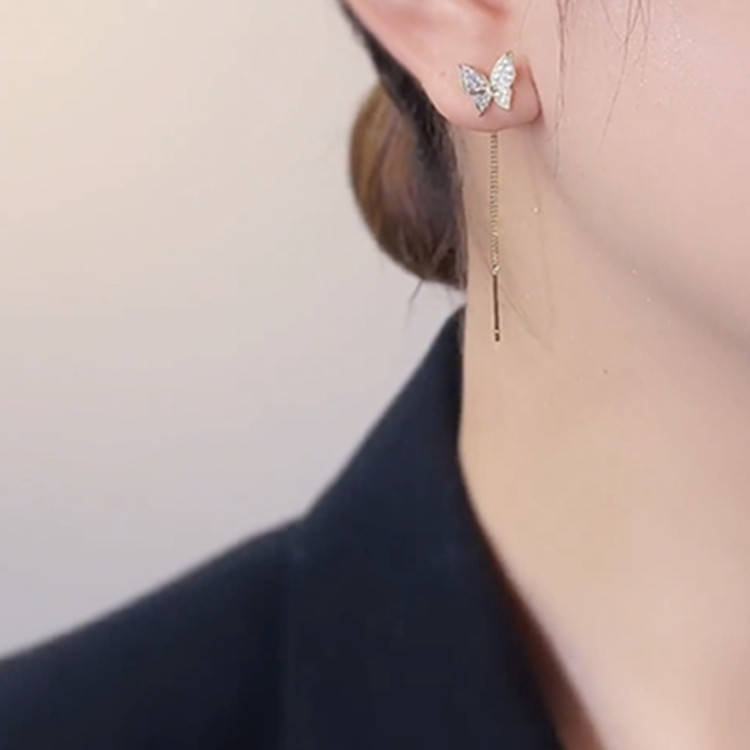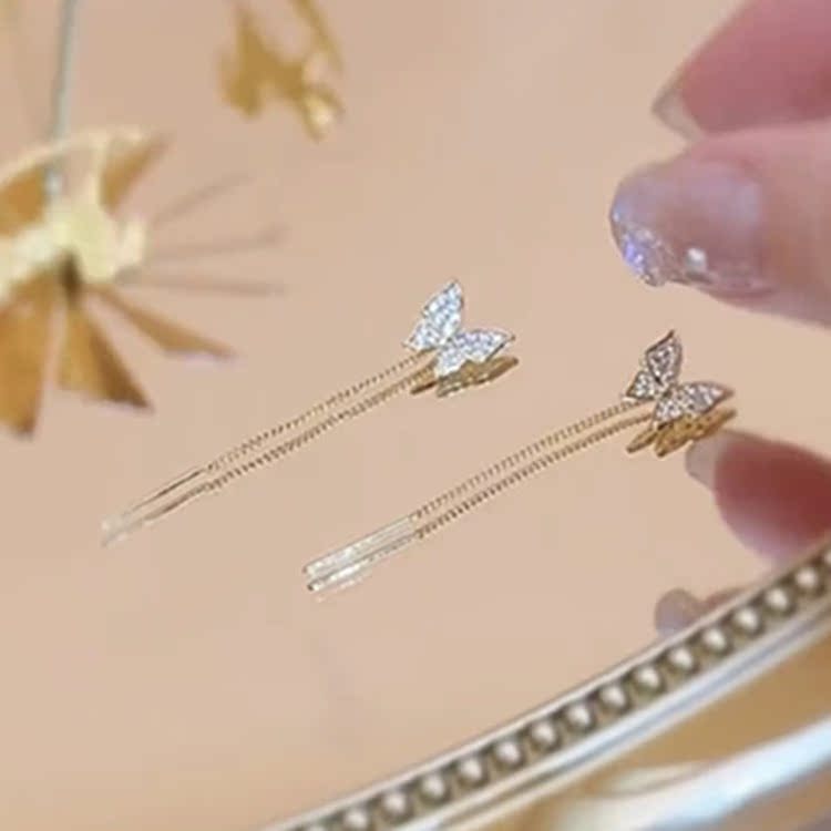 Butterfly earrings women's 2022 new trendy high-end temperament long version tassel thin face earrings net red earrings