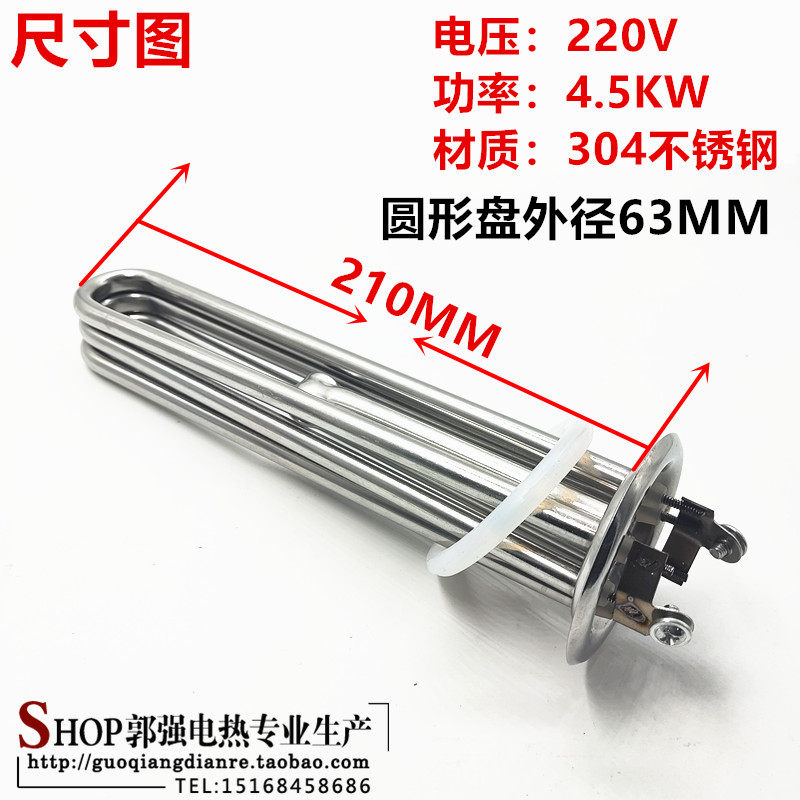 63 plate flange water boiler heating tube heating tube 304 stainless steel dishwasher electric heating tube round triangle 4 5KW