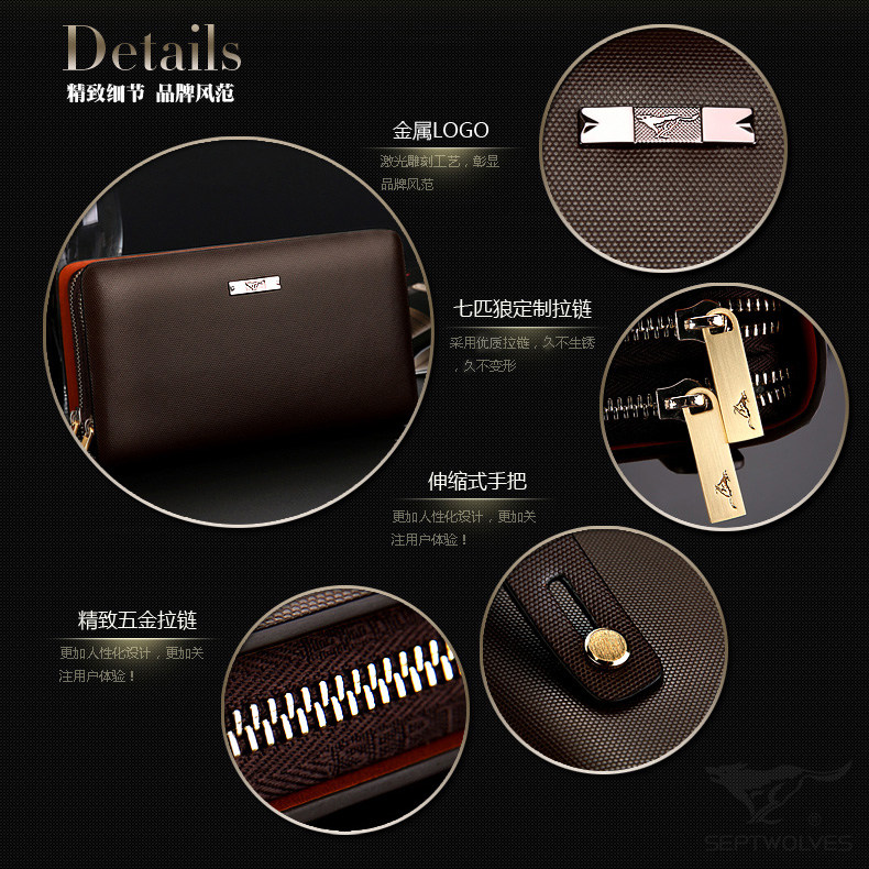 Seven Wolves Men's Handbags Genuine Leather Large Capacity Hand Grab Bag Casual Hand Grip Bag Business Bull Leather Bag Men's Bag Clip Men
