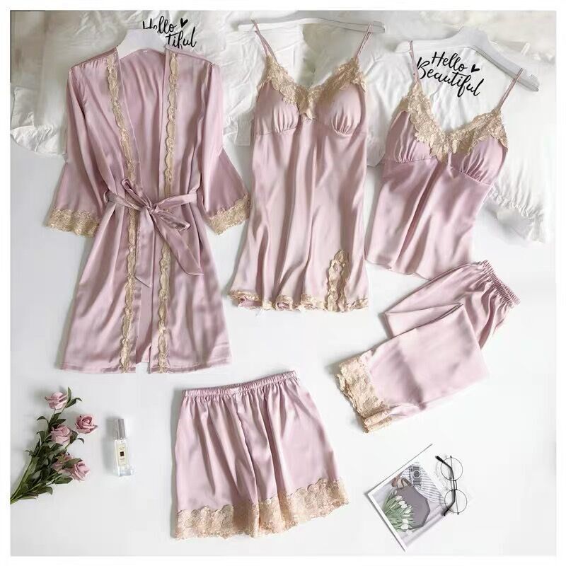 Guangdong Jieyang Sleeping Girl with Chest Cushion Ice Silk Pyjamas Woman Spring Summer And Autumn Sexy Emulated Silk Sashimi Body Harness Sleeping Dress Robe