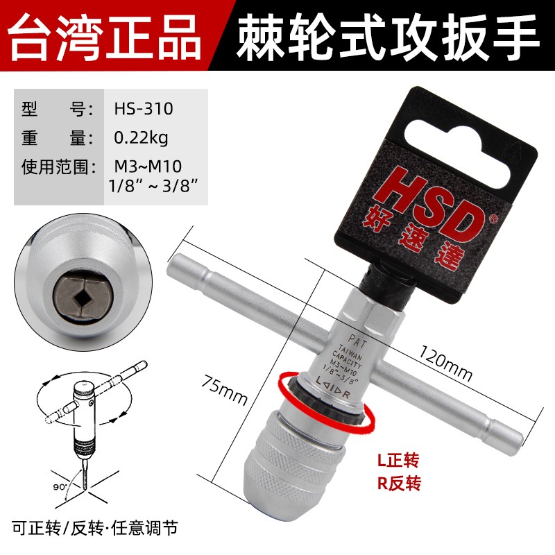 Import Hand with screw tapping wrench Screw Tapping the Tooth God Instrumental ratchet screw tapping Screwdriver can turn left and right