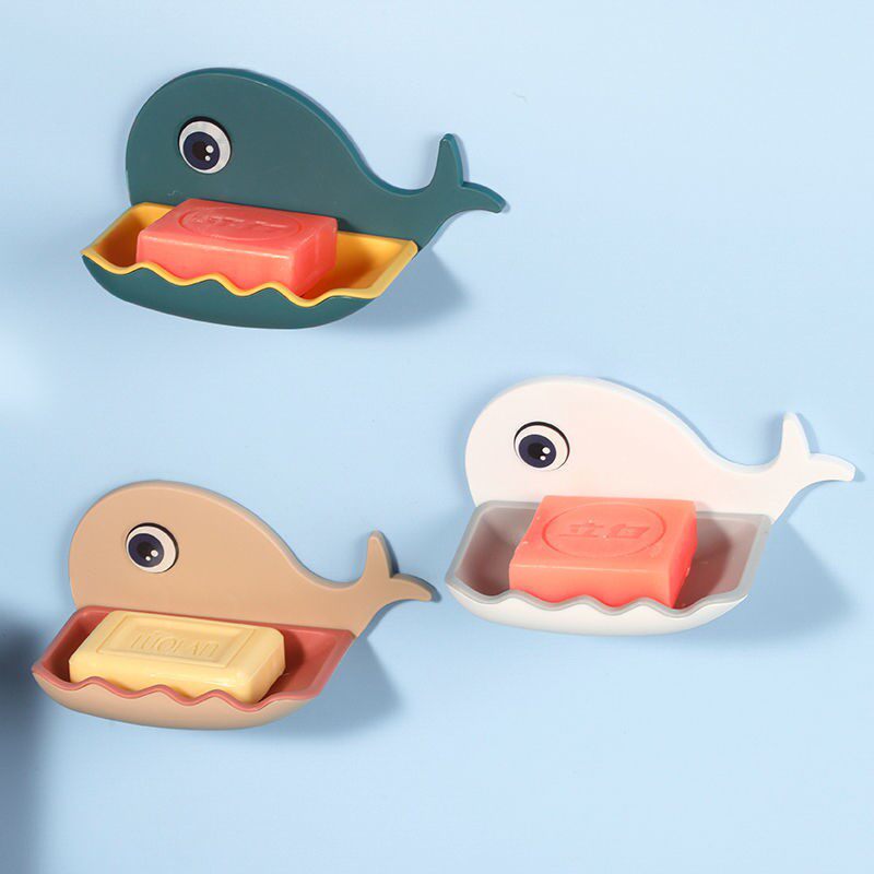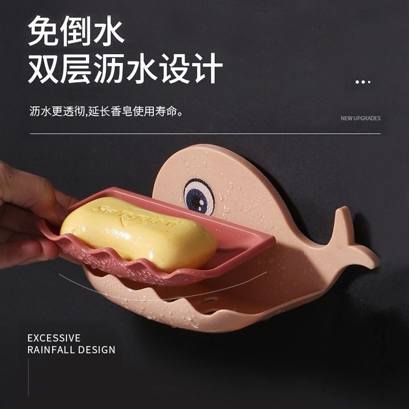 Soap box shelf powder room double-layer contrast color creative drain rack home wall-mounted punch-free soap box