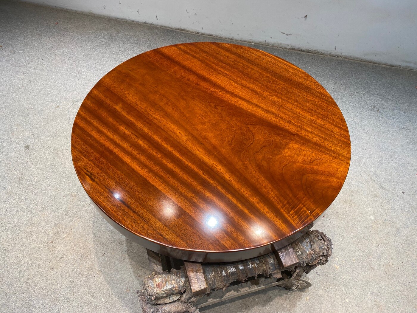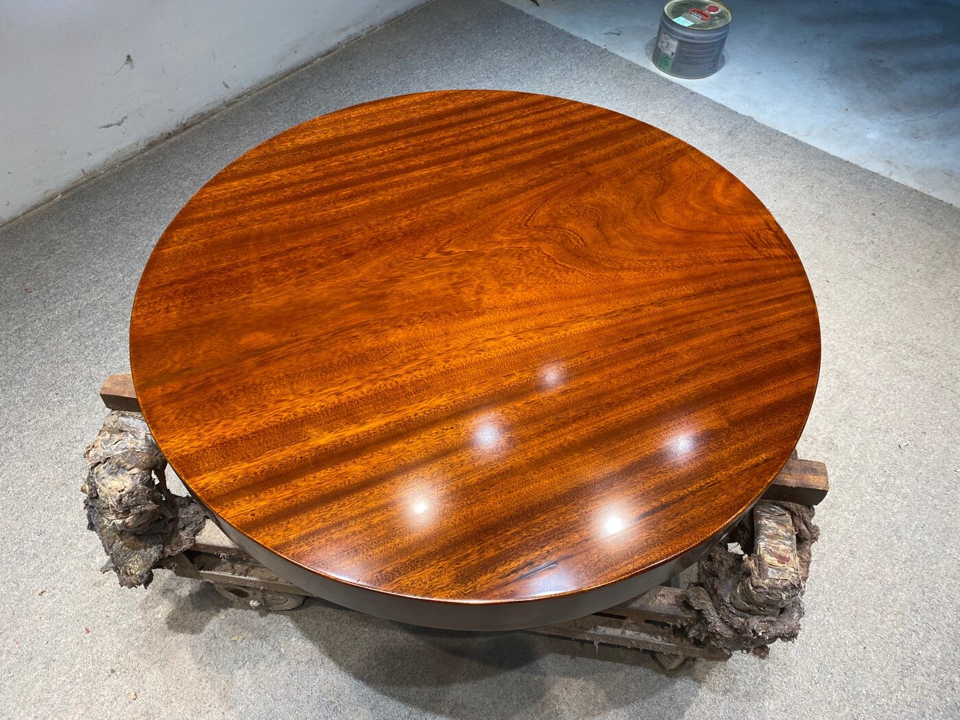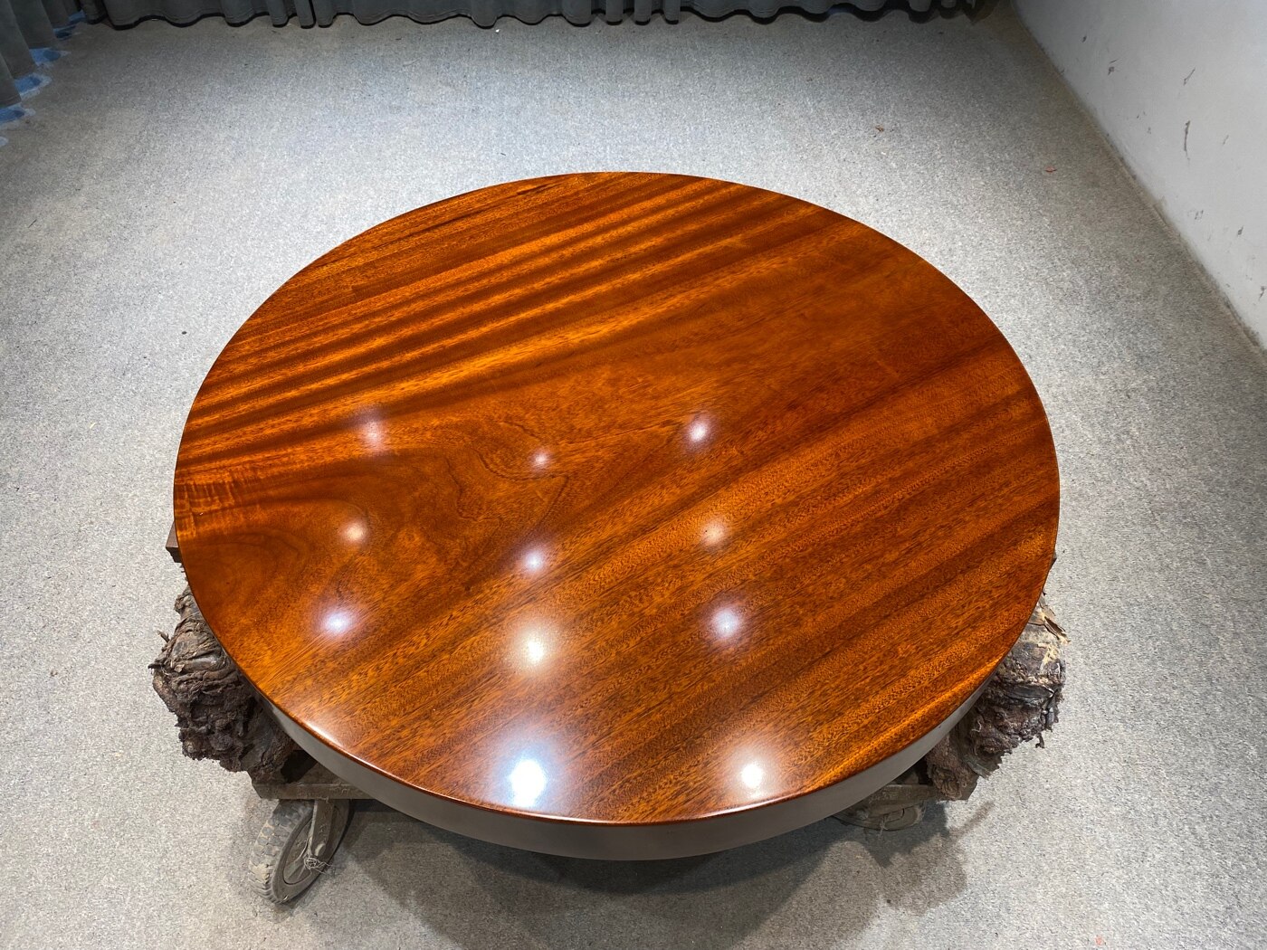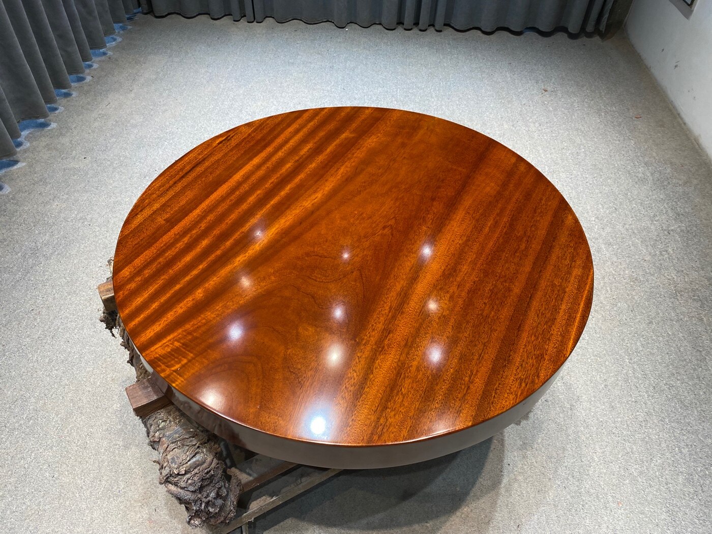 Size: 110 * 110 * 10 Okan solid wood large plate round table log table tea table Yangtai table New Chinese style