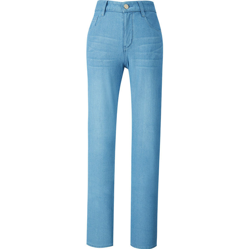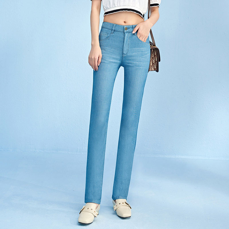 Ice Silk Jeans Woman Straight Drum Long Pants Summer Ultra Slim Loose High Waist High Elastic slim Cool Sensation Heather lengthening version
