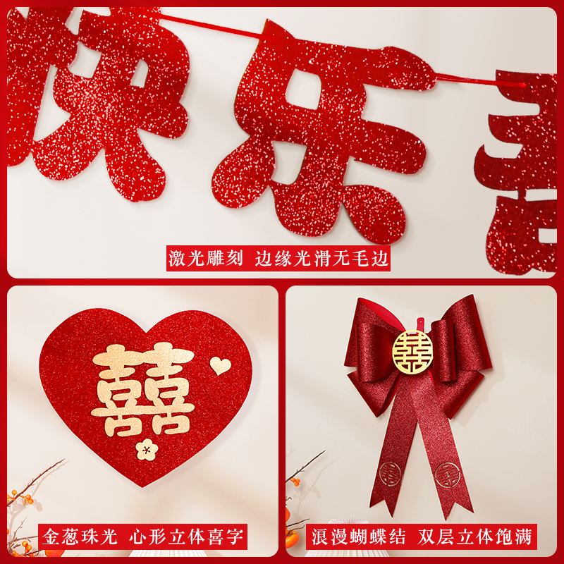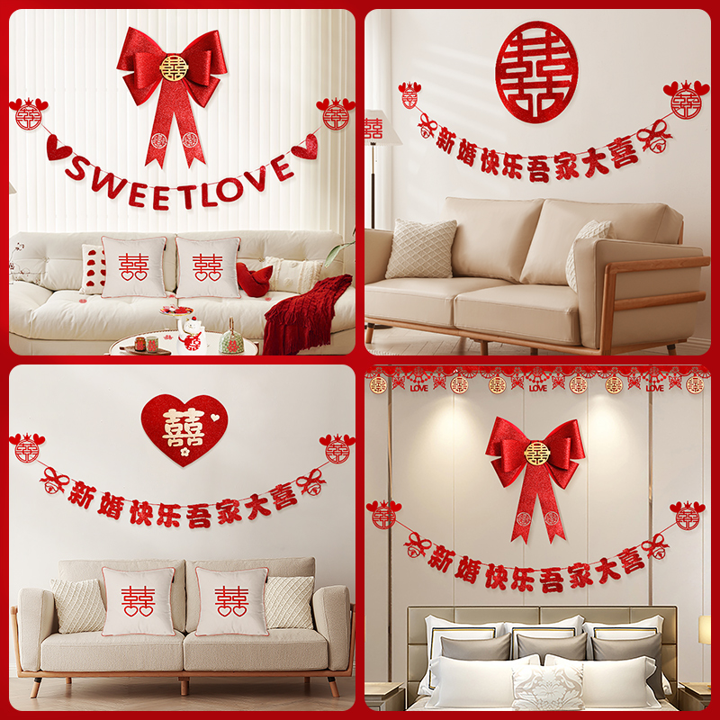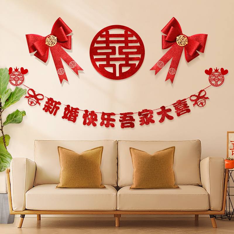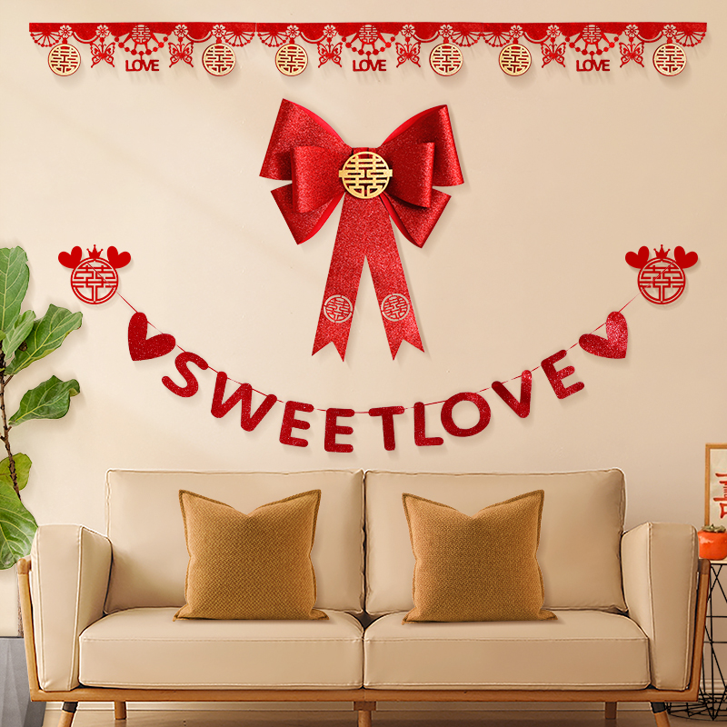 Marriage for men and women Fang Xinhuatrium Living Room Butterfly Knots Wedding house Gold scallion EVA Fancy Character Background Wall Arrangement Suit