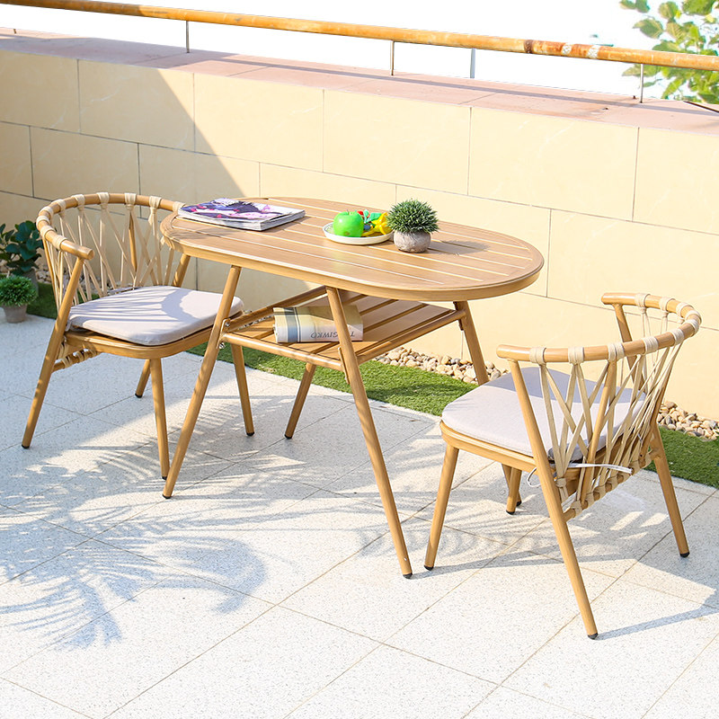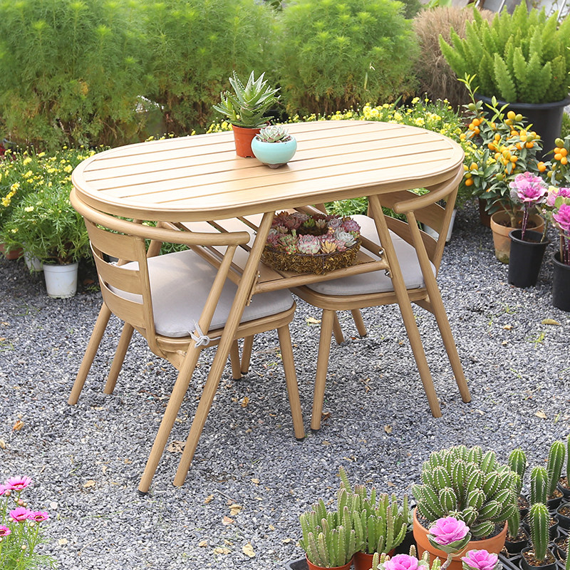 Full Aluminum Chair One Table Two Chairs Light Color Full Aluminum Chair One Table Two Chairs One Table Two Chairs Red Bean One Table Two Chairs Light Wood Grain Red Bean One Table Two Chairs-Deep Wood Grain Red Bean One Table Two Benches