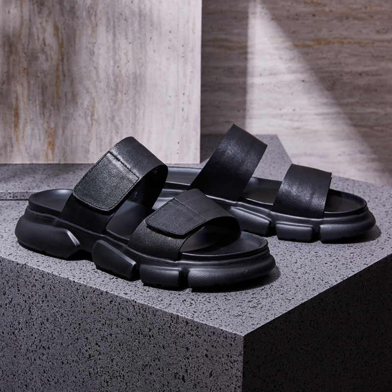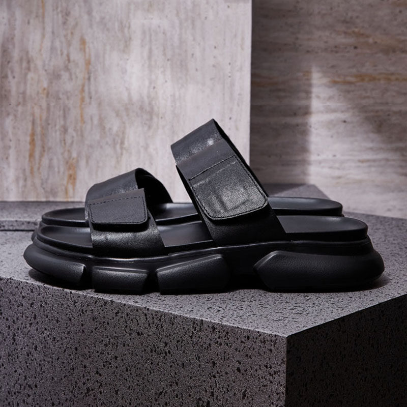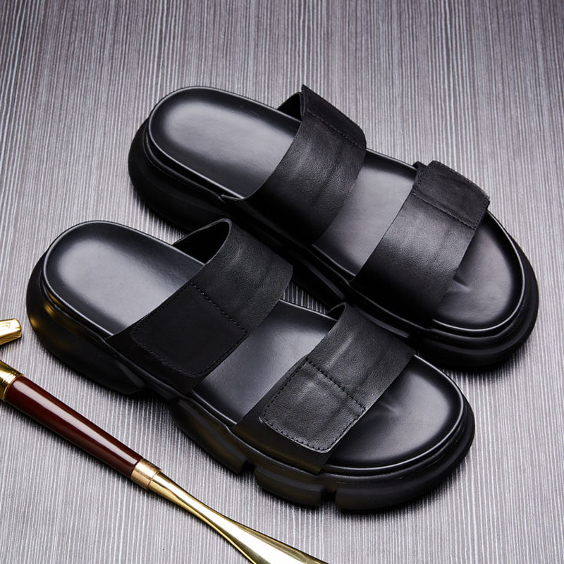 Rodemeico genuine leather slippers men's 2022 Summer new thick bottom lined with beach shoes outside wearing magic pastes sandals