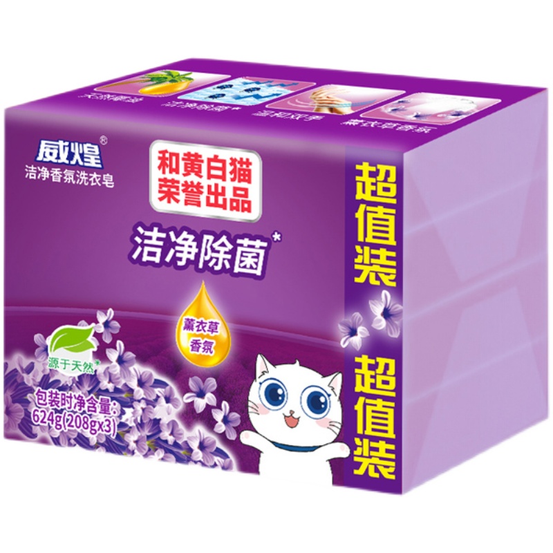 White Cat Weihuang Clean Fragrance Laundry Soap Lavender Fragrance Soap Clean Sterilization Soap Bright White 208g*3 pieces