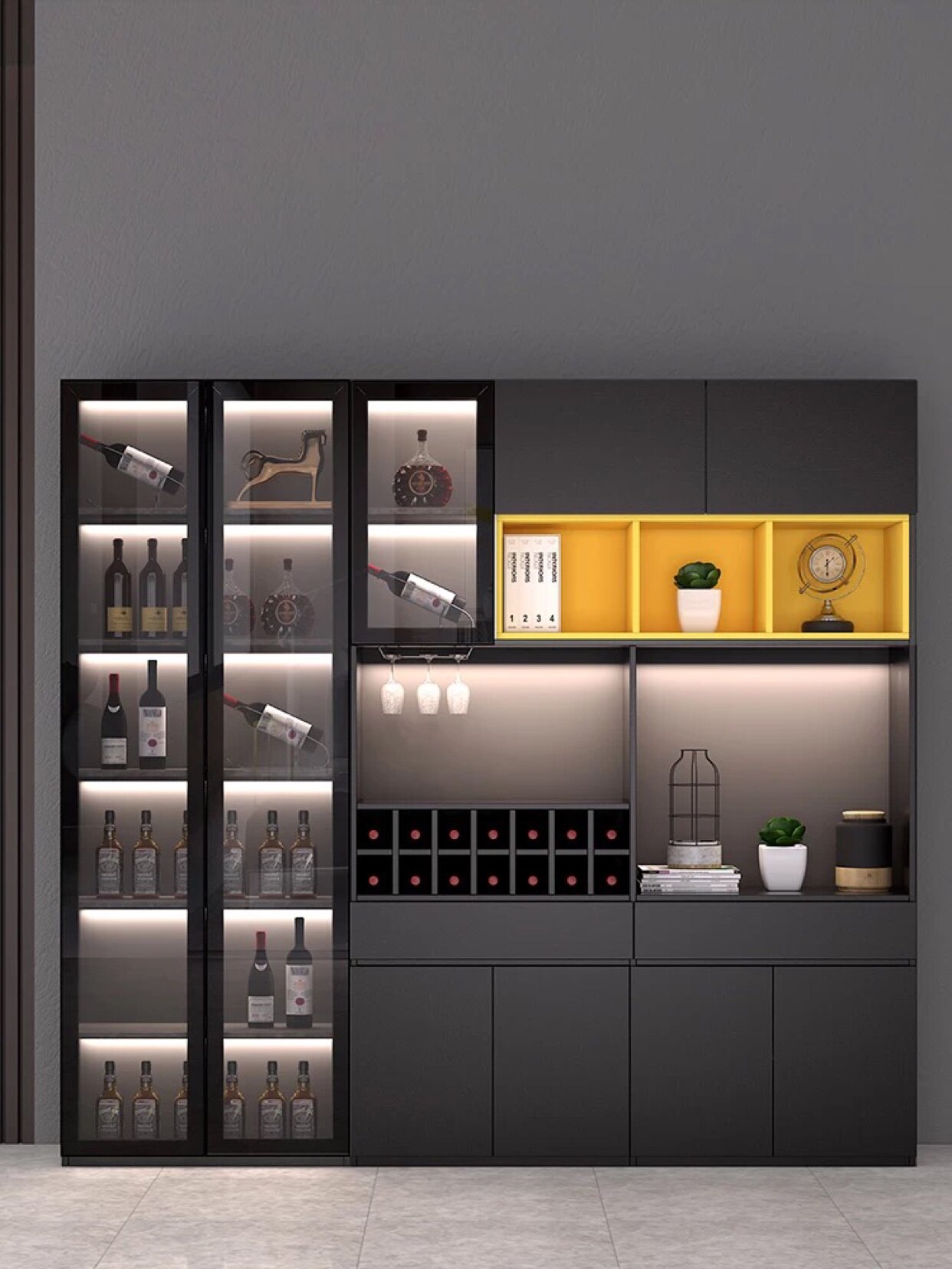 Modern minimalist living room wine cabinet dining cabinet integrated against the wall dining room cabinet light luxury custom home glass display cabinet