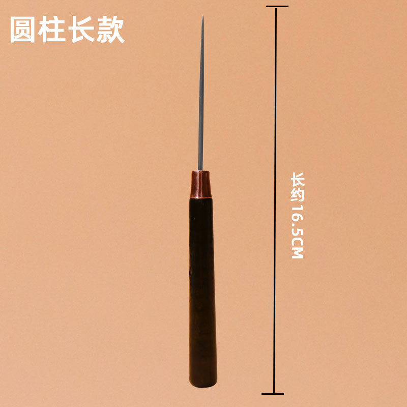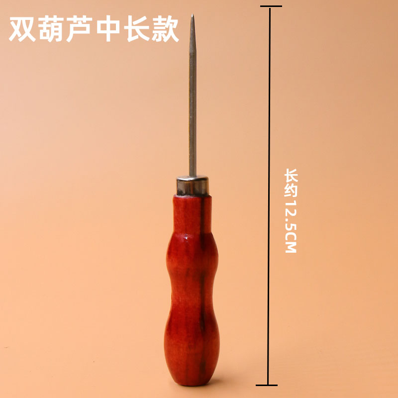 Old wood handle taper needle shoe soles hand hole punched eye on shoe line upside corner cone needle