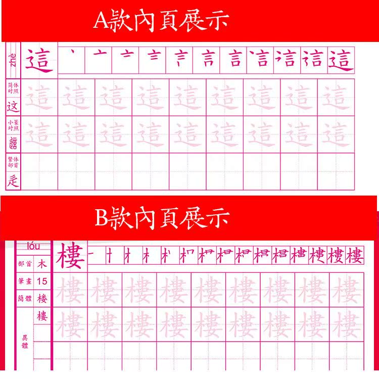 Traditional Chinese character practice copybook practice copybook Chinese regular script hard pen primary school Hong Kong pencil pen beginner tracing red book