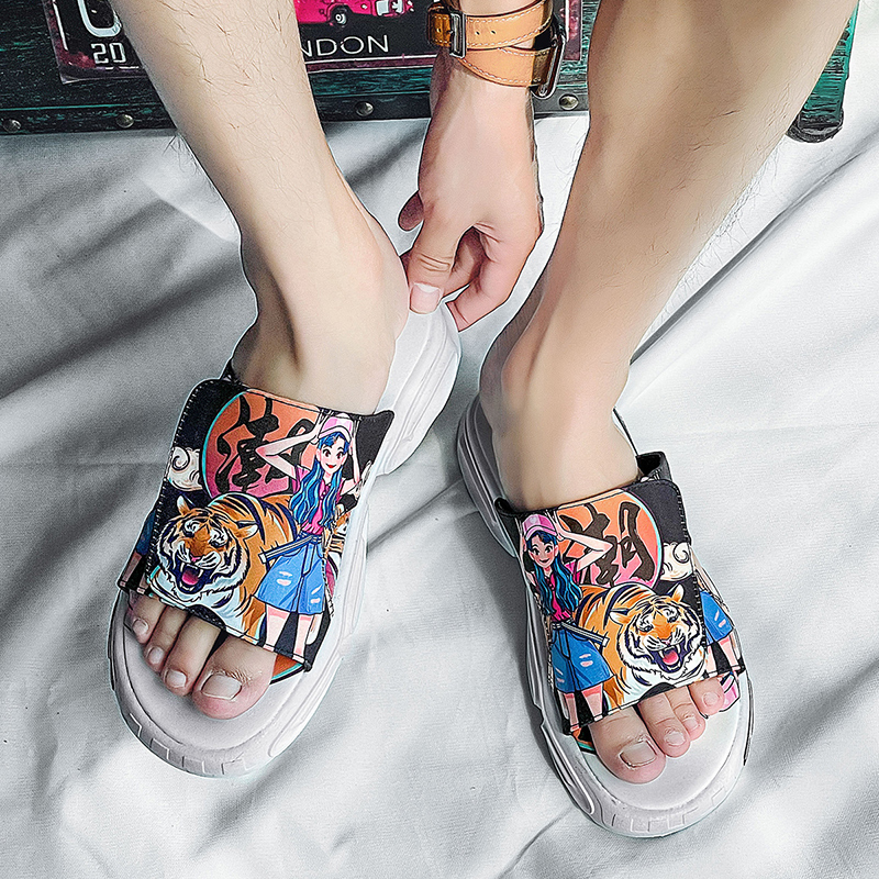 Slippers Men 2022 Summer New Home Beach Outside Wearing Cool Drag Non-slip Deodorant Stomachon RED ULTRA-FIRE SANDALS