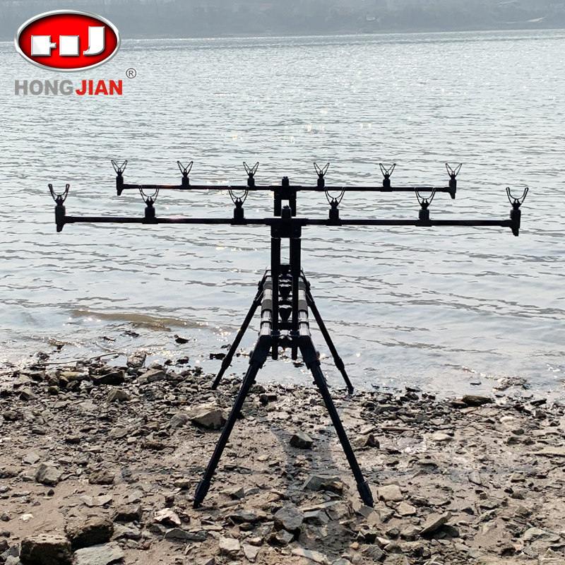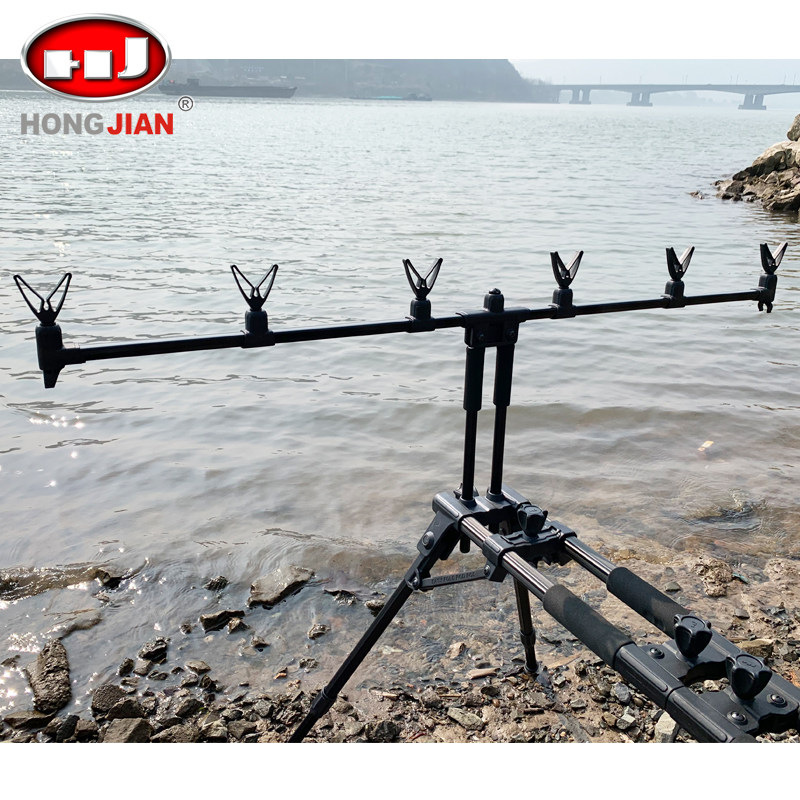Hongjian's new six-head library fishing bracket multi-functional sea rod four-legged folding aluminum alloy bracket fork head rocker