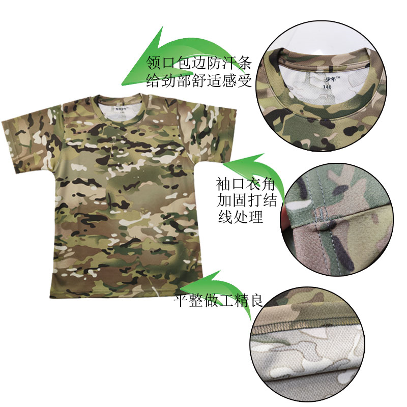 Children's camouflares Summer speed dry round collar short sleeve T-shirt shorts student military training physical wear summer camp suit