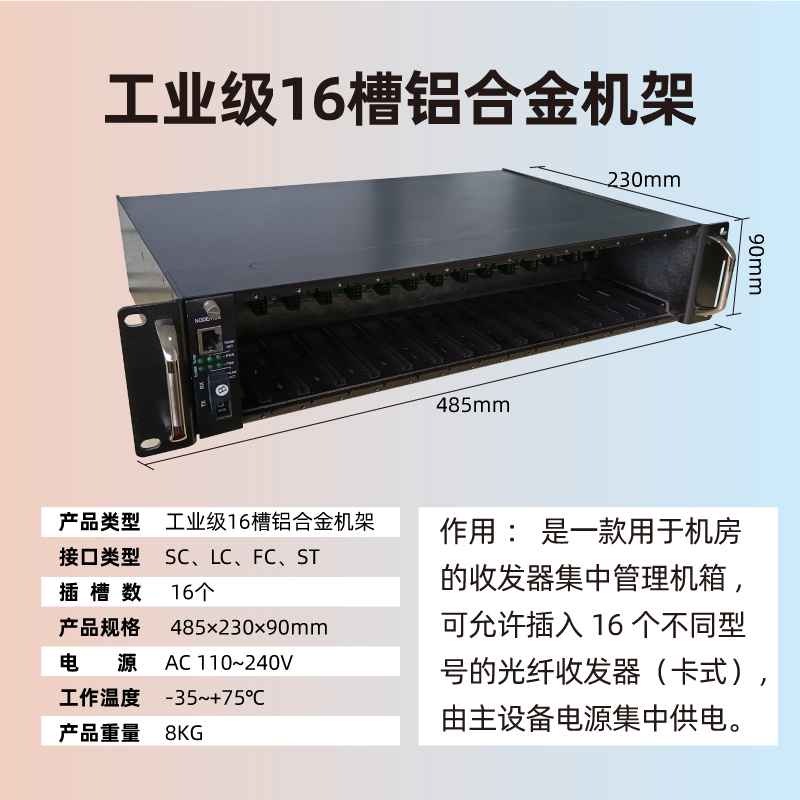 Industrial grade 16 - inch 19 - inch 2U photobrazing transceiver embedded in card frame photoelectric converter aluminum alloy chassis
