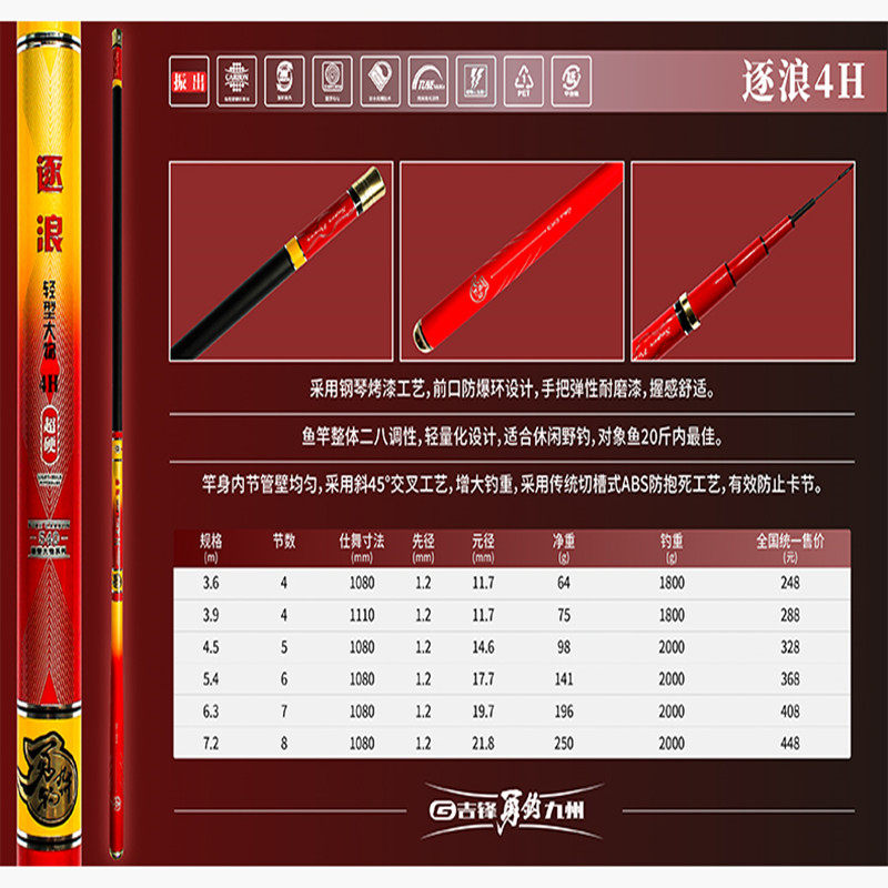 Wave-by-wave 4H brave fishing Jiuzhoutai fishing rod long section rod wild fishing light large object rod carbon rod fishing 28 hard tune