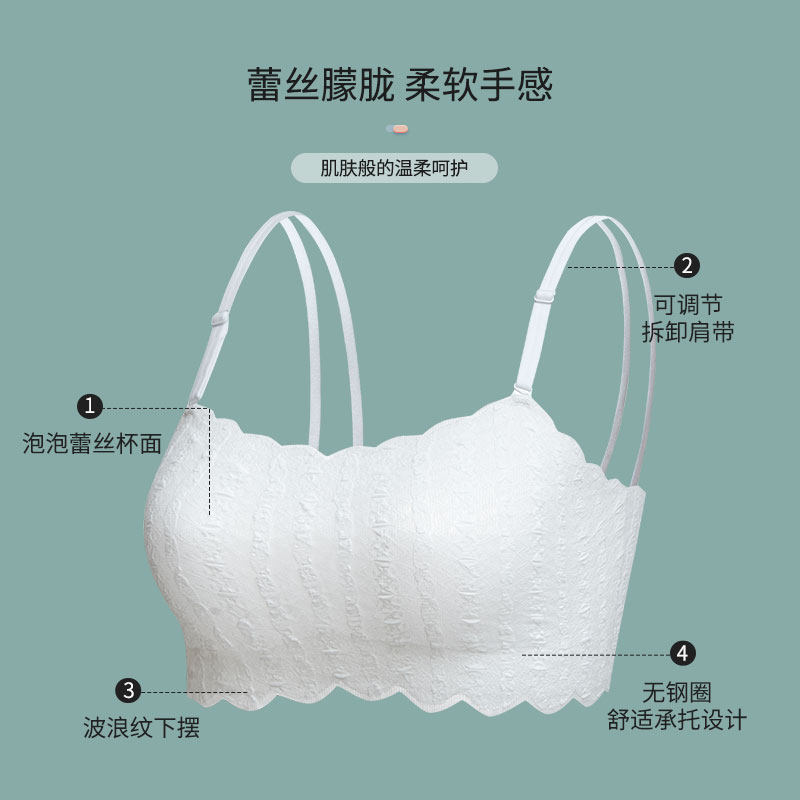 Lace strap tube top underwear women's summer breathable thin section small chest gather no steel ring vest type detachable bra