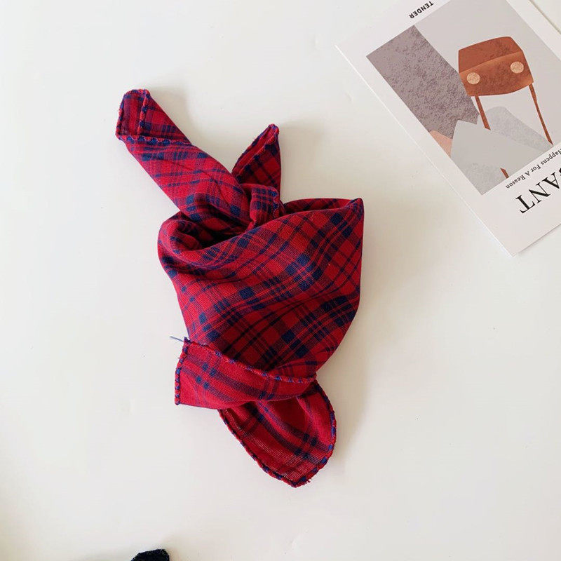 Inkstone home boys and girls plaid small square towel children's double-sided modeling baby small scarf triangle square saliva towel tide