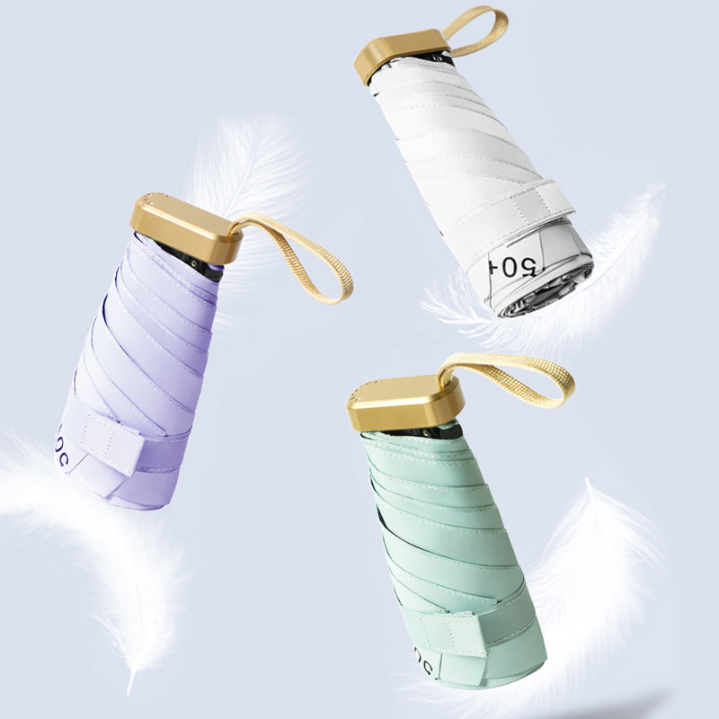 Five-fold umbrella female sunny umbrella dual-use student folding sunscreen ultra-light compact portable pocket sunshade umbrella thickened