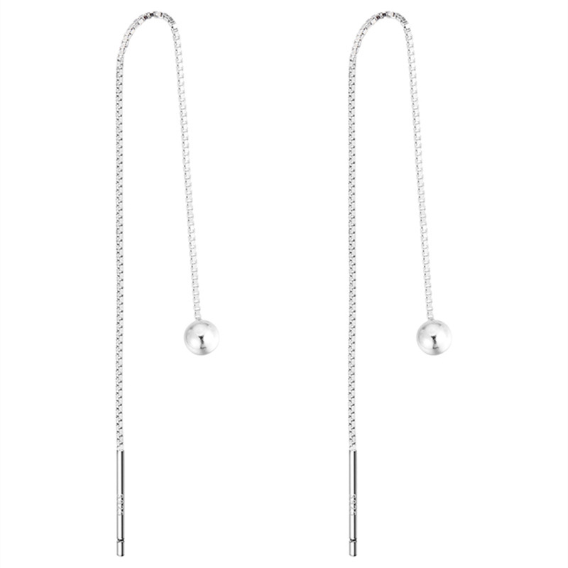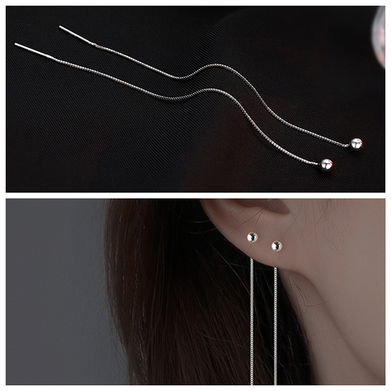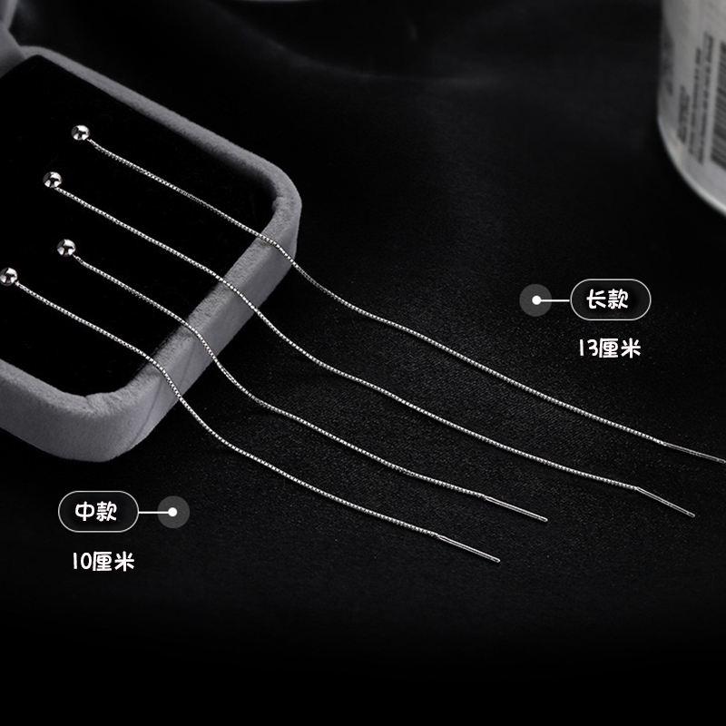Double-ear-hole ear-pin-ear necklace with female pure silver-raised earrings for long version earrings single round Pearl round face Lean High Level Sensual Accessories