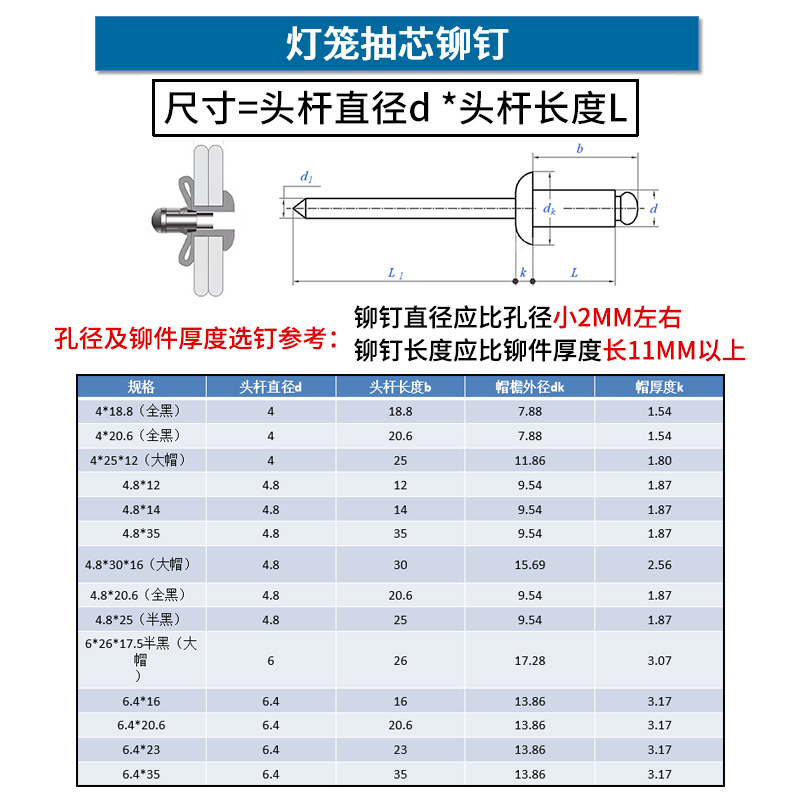 Lantern pumping core rivet full aluminum large cap along pull rivet Three-claw black car with a wine box with a pull nail rivet-Taobao