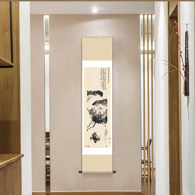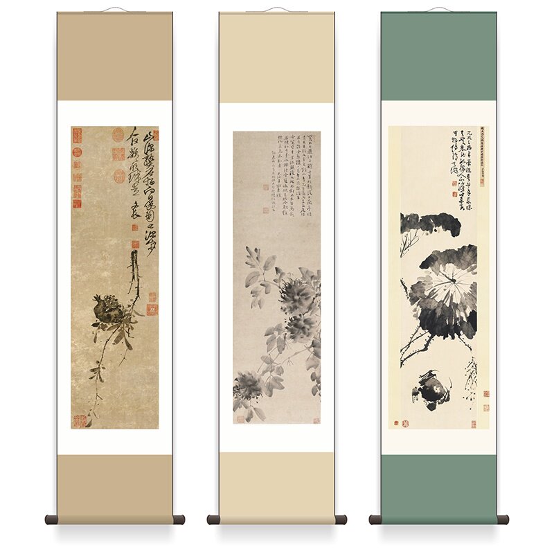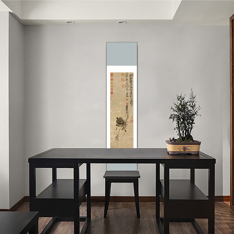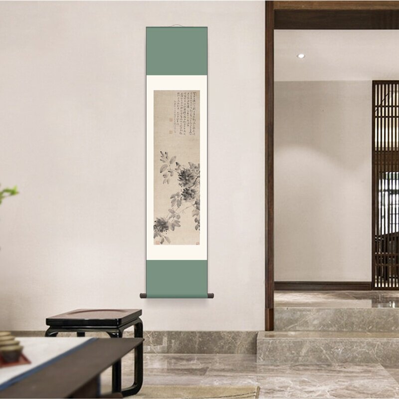 Scroll hanging axis painting antique painting gift box tearoom library masonry Chinese decoration Xu Weiguo painting flower peony hanging axis