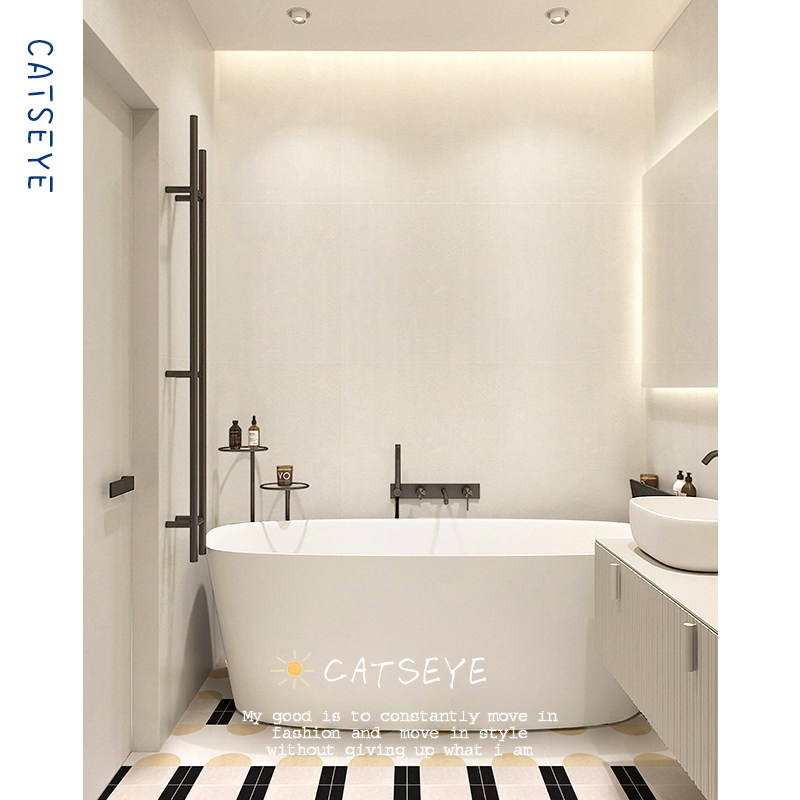 Cat's eye soft light plain color bathroom micro-cement tile wabi-sabi cream style matte bathroom wall tile floor tile